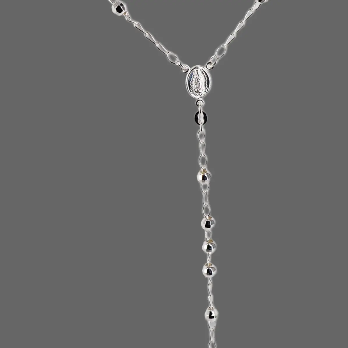 This meaningful necklace features 925 Sterling Silver rosary beads, capturing delicate beauty in an iconic religious design. The 4mm beads are diamond cut, with a Virgin Mary Guadalupe centerpiece. A Tube Cross hangs beautifully from the chain. Perfect for women and men, it weighs approximately 10.5 grams. High polished for a super shiny and smooth finish.