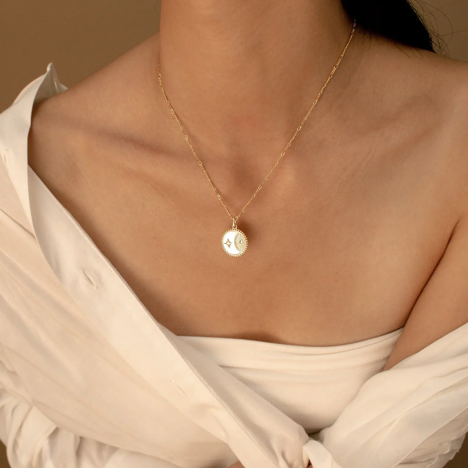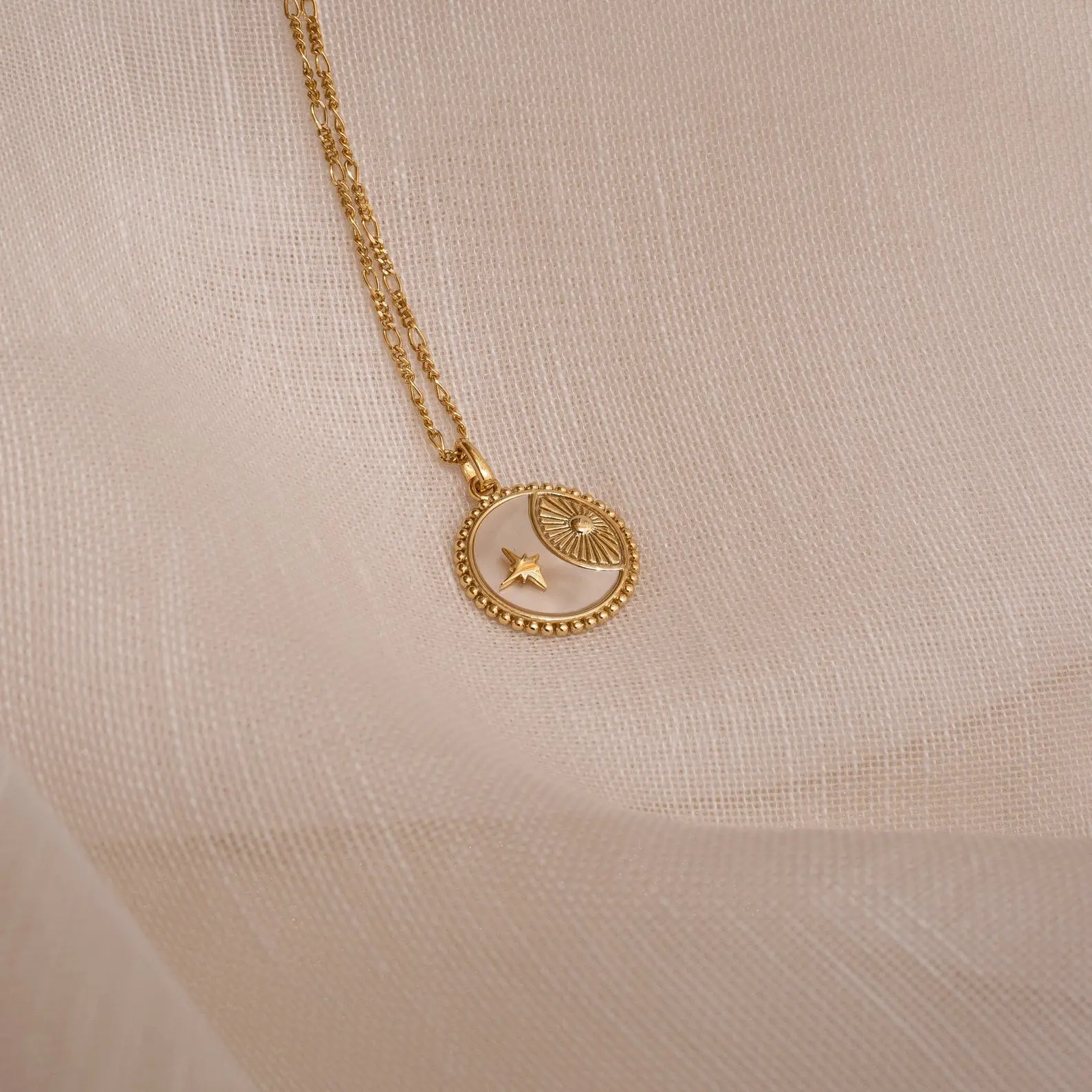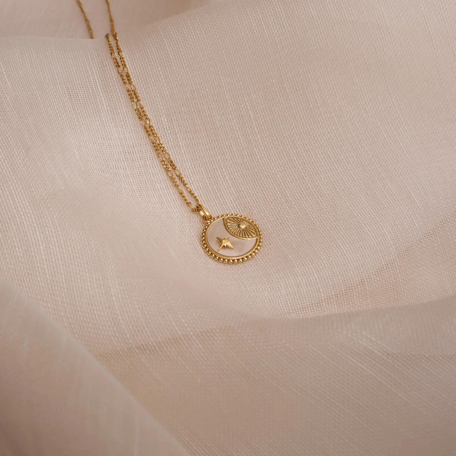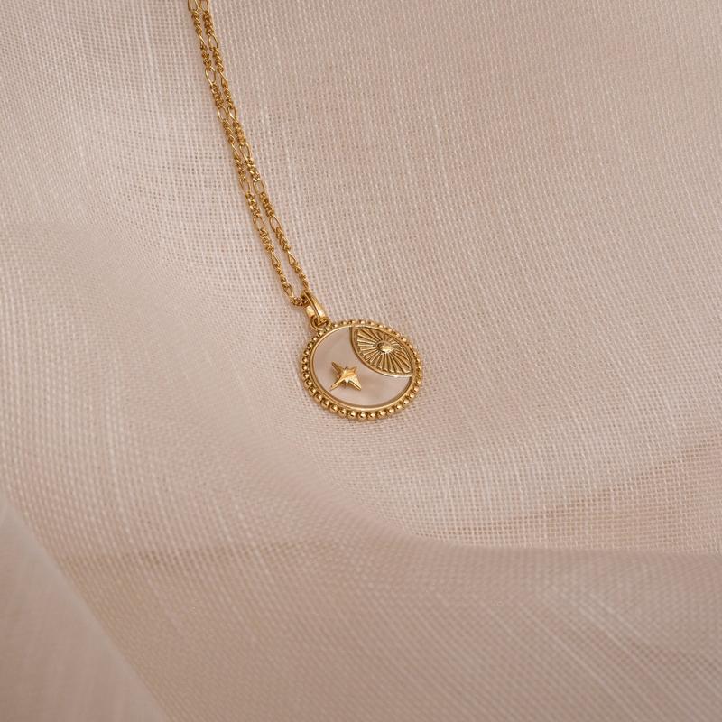 I am so in love with this necklace it is just beautiful and matches with everything. I wear it almost every single day and get so many compliments. Also pairs well with the moon and star huggies!