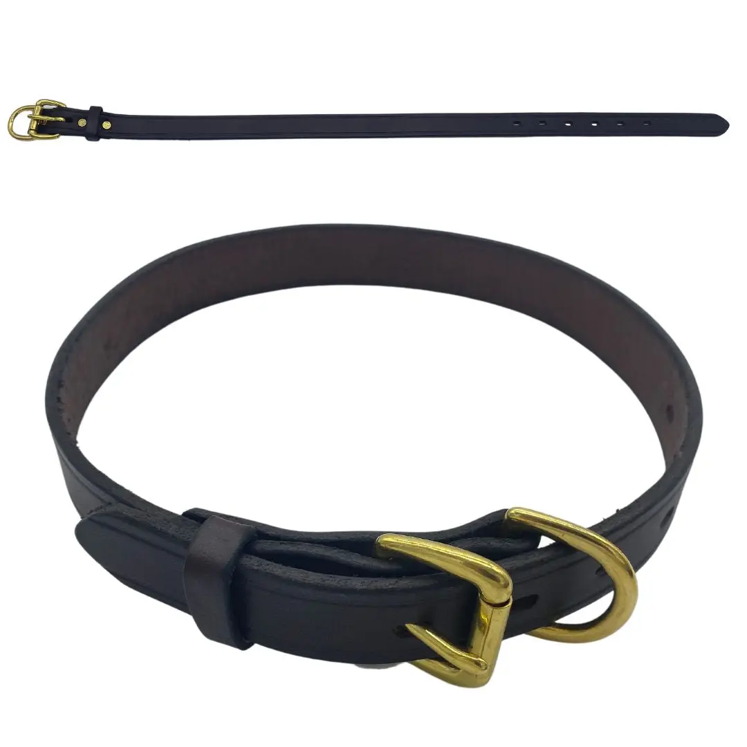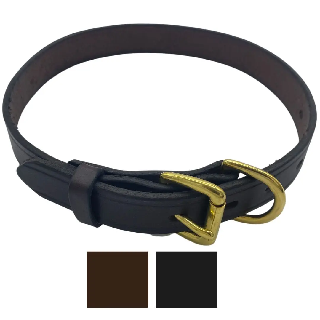 Simple in appearance, this leather dog collar is designed to be both beautiful and functional. Made from the highest quality latigo leather this dog collar is stronger and more flexible than other leather dog collars. Each leather collar edge is hand beveled for a smooth feel throughout the length of the collar and made with the highest quality solid brass and stainless-steel metal hardware.