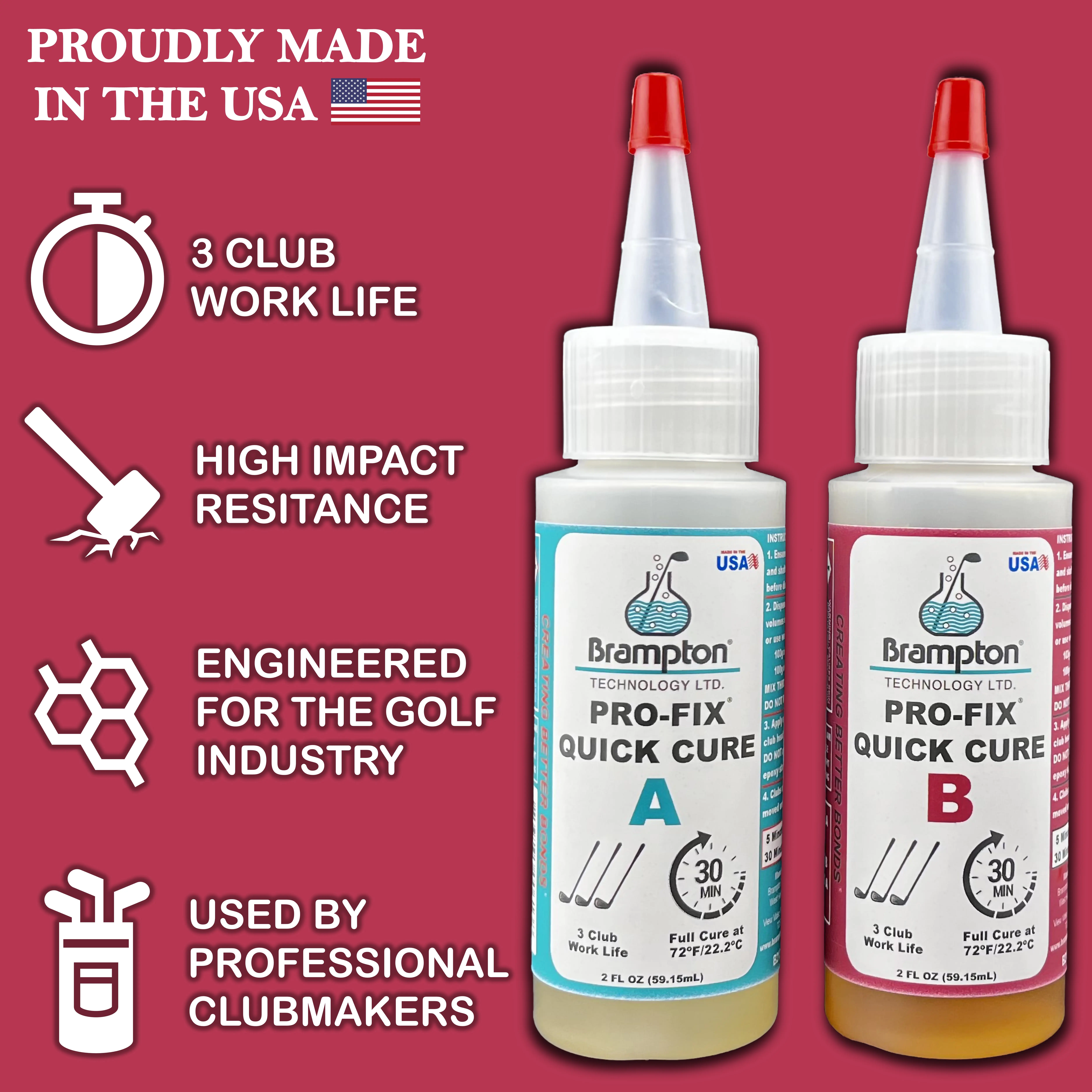 PRO-FIX Quick Cure Golf Epoxy is the most versatile golf epoxy with a work life long enough to repair several clubs, while maintaining a strong bond and fast cure time. PRO-FIX Quick Cure Golf Epoxy is the preferred epoxy for multiple golf club repairs worldwide by professional clubmakers. All PROFIX Golf Epoxies work with all types of golf shafts and golf heads. Before applying any PRO-FIX Golf Epoxy be sure to check out Brampton's in-depth tutorials to learn how to mix and apply golf shaft epoxy (golf epoxy glue) for the best results possible.