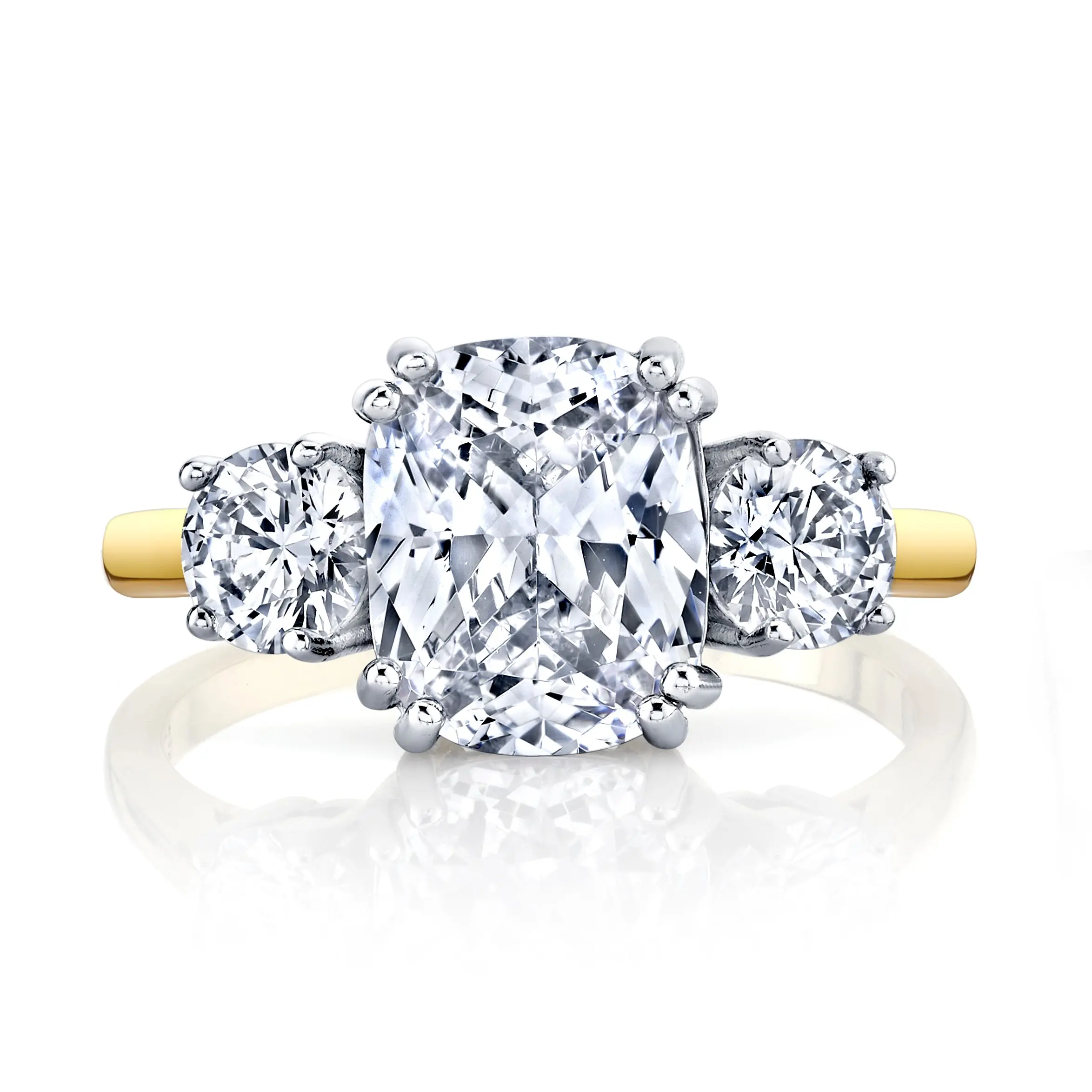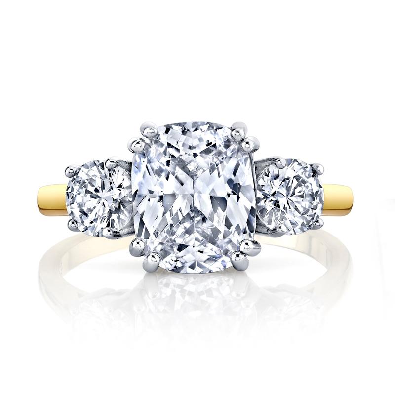 ·High-QualityGrade 3.5 Carat Full Cushion Cut Cubic Zirconia Center (Not Checker Cut) with 0.5 Carat Side Stones.