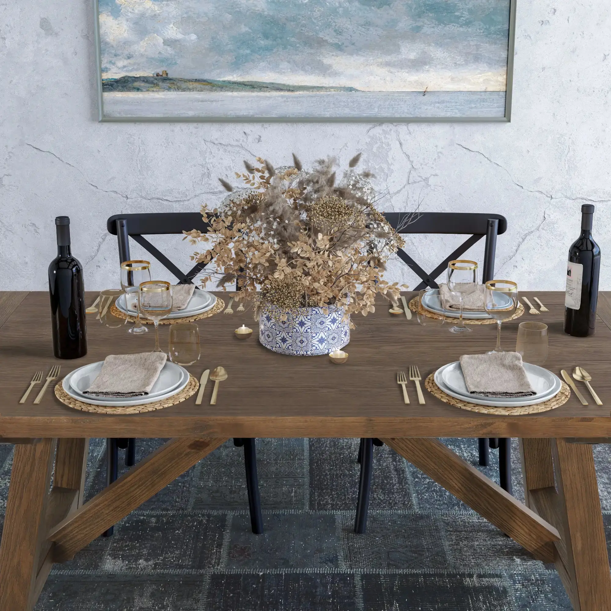 This 100% solid wood dining table is the culmination of years of honing the craft of furniture manufacturing and design. It combines innovative techniques like a customizable base platform and wood embossing technology to create a one-of-a-kind product. Choose your own combination of top and base colors, all with beautiful oak embossed finishes.