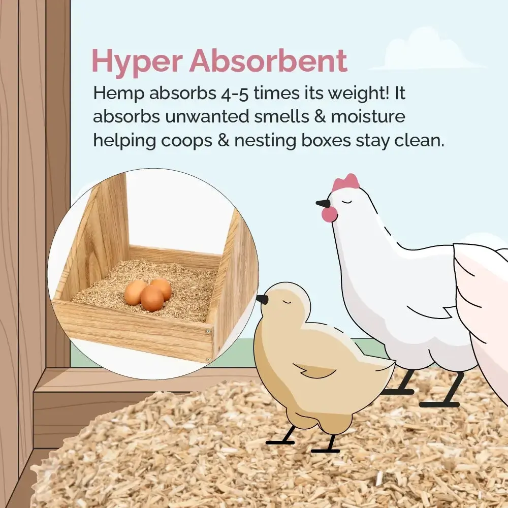·BIODEGRADABLE, COMPOSTABLE, & VERSATILE: Hemp is pillowy soft & works great in a chicken nesting box. Hemp is also used for chicken coop bedding; as hemp clumps (similar to kitty litter) for simple scoop & removal.