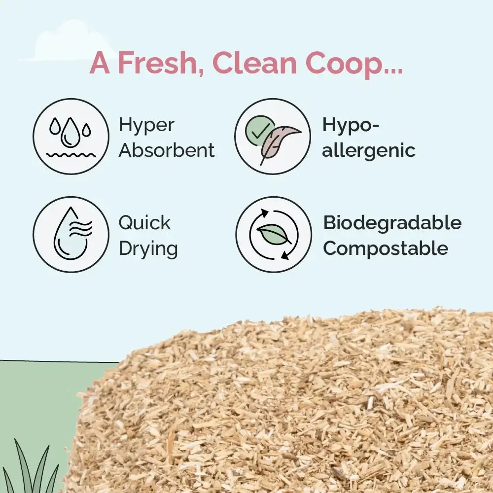 ·VIRTUALLY DUST FREE & PERFECT FOR CHICKENS: Hemp is cut specifically for chickens. Large enough hemp pieces for absorption, bedding & bedding coverage, yet small enough to not get caught in chickens' feet, feathers or be dusty.