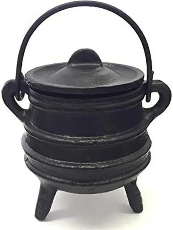 The ribbed design adds a touch of elegance while the handle makes it easy to carry around. Use the lid to keep your incense burning smoothly or simply use the cauldron as a decorative piece on your shelf.