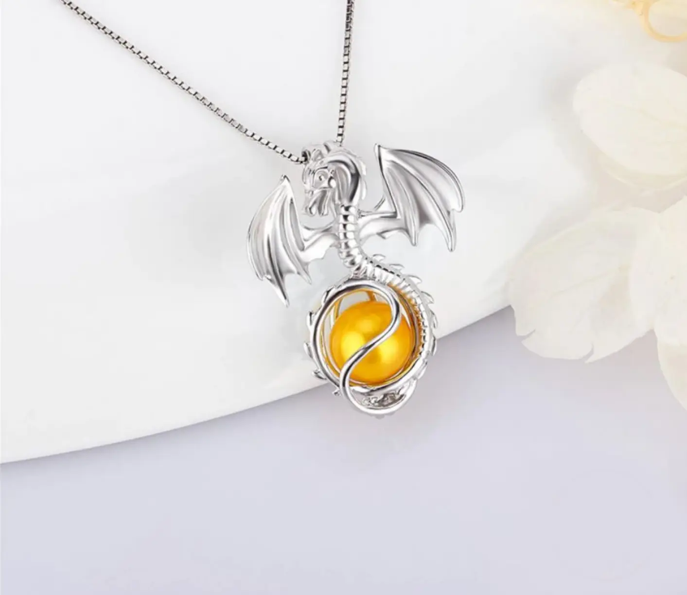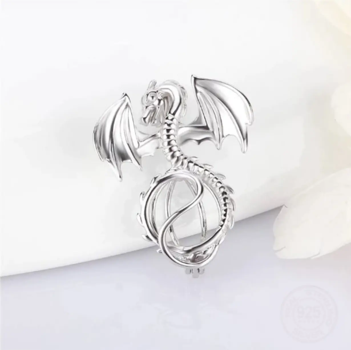 5. Vintage 925 Sterling Silver Dragon Pearl Cage Pendant Necklace (Pearl Included)