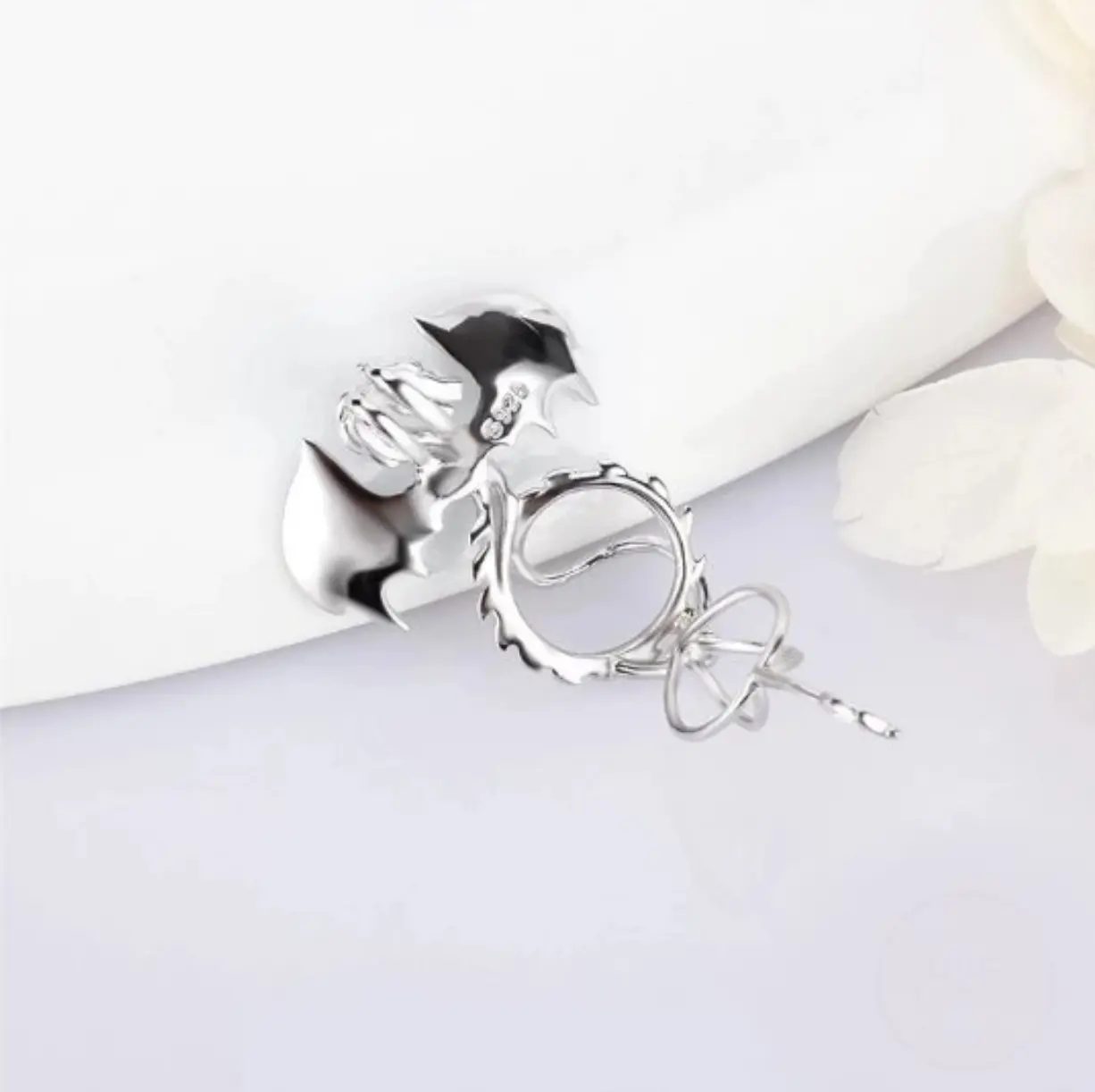 Vintage 925 Sterling Silver Dragon Pearl Cage Pendant Necklace (Pearl Included)
