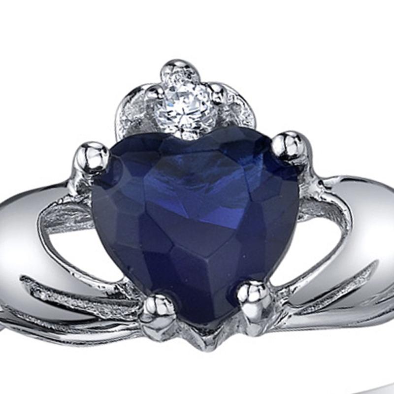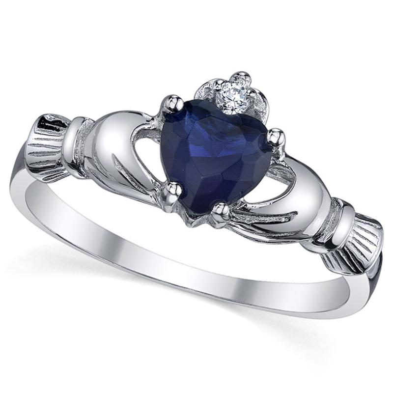5. Women's Sterling Silver 925 Irish Claddagh Friendship Love Simulated Sapphire Blue Heart Cubic Zirconia Ring