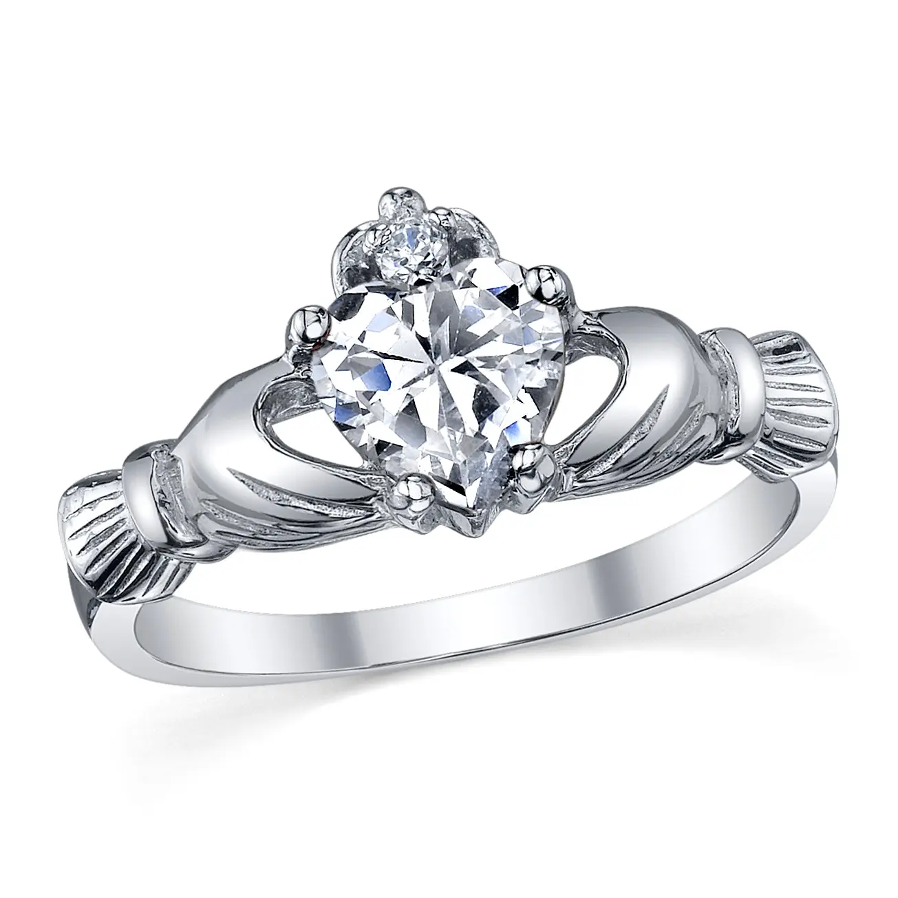 5. Women's Sterling Silver 925 Irish Claddagh Friendship Love Clear Heart Cubic Zirconia Ring