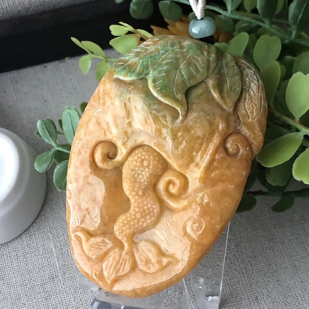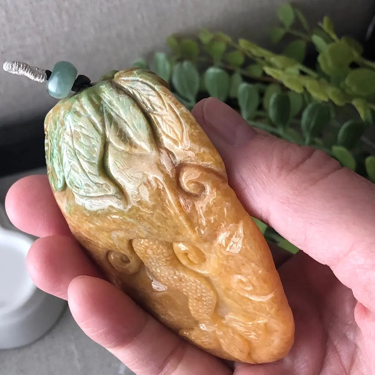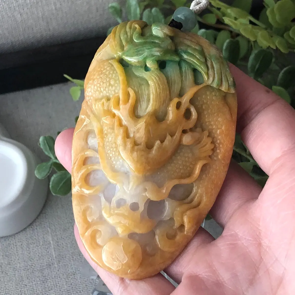78mm Jadeite Jade Yellow Green Carved Dragon Pendant