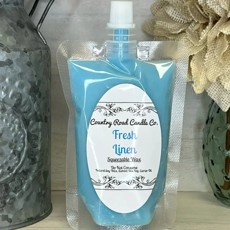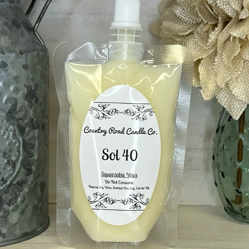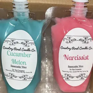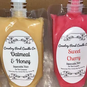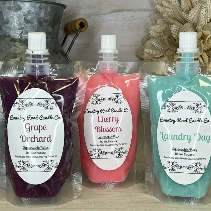 *Squeeze wax consistency will vary from pouch to pouch due to different viscosities of each oil and also the time from which the pouch was poured, as Soy Wax continues to harden over time. This will not affect strength nor throw of the scent.