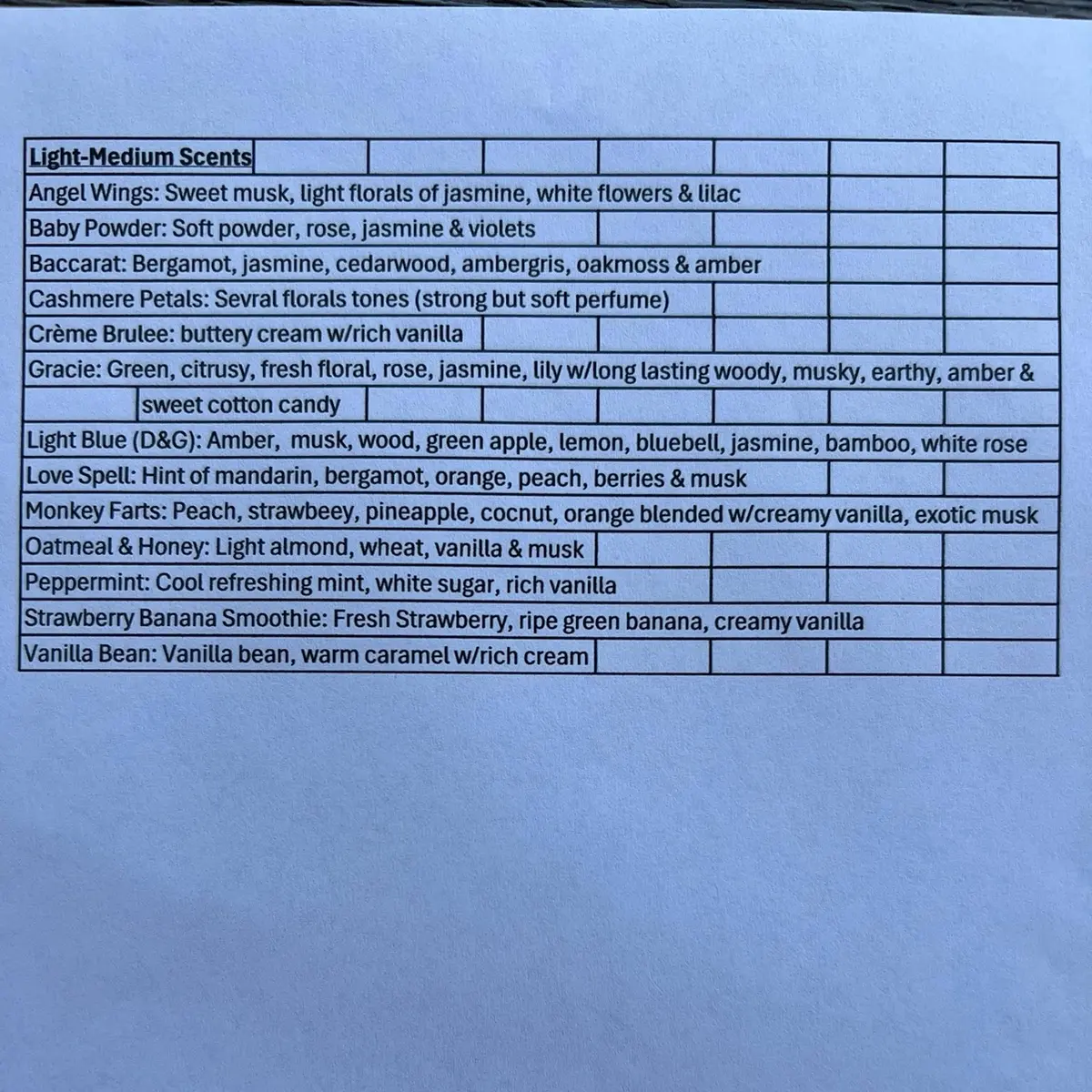 We will be adding new scents daily. Feel free to message us with a scent you would like to see.