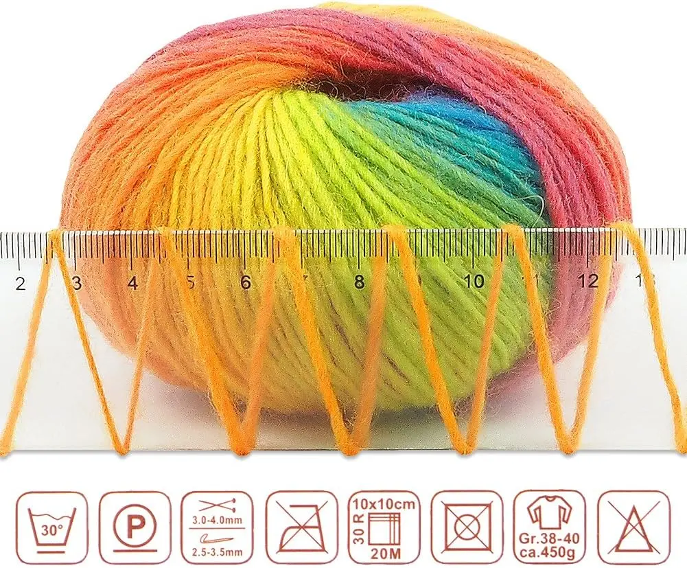 ·[PRODUCT INFORMATION]There are 2 skeins of rainbow wool yarn in a package,and each wool yarn is about 50g(about 180m/196yards)