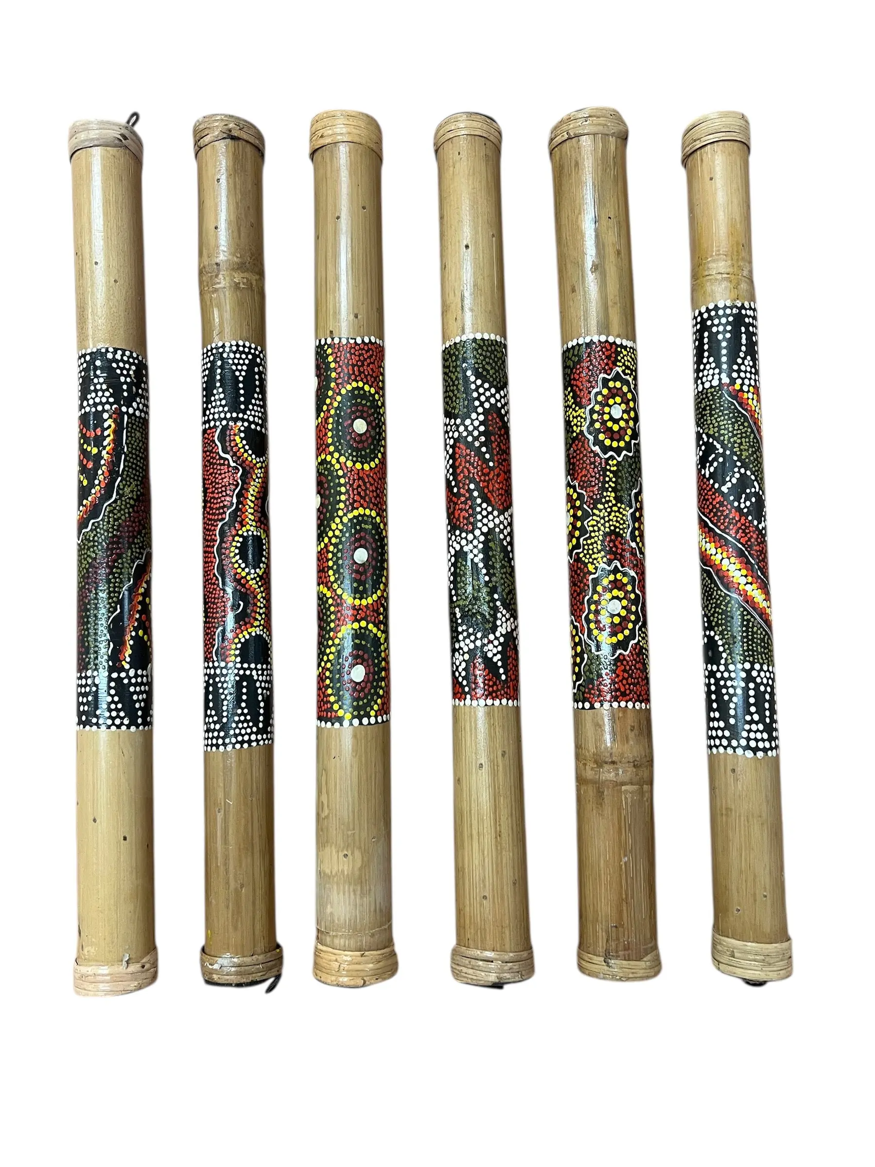 Terre Bamboo Rain Stick, Rain Maker 24" 32" 40" 48" 59" Painted, Burned, Cave or Maori Design
