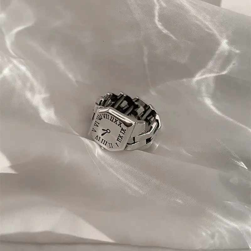 This S925 Roman Numeral Clock Ring is a modern classic. With its vintage hip-hop industrial look, this special retro style clock ring is sure to make a statement.