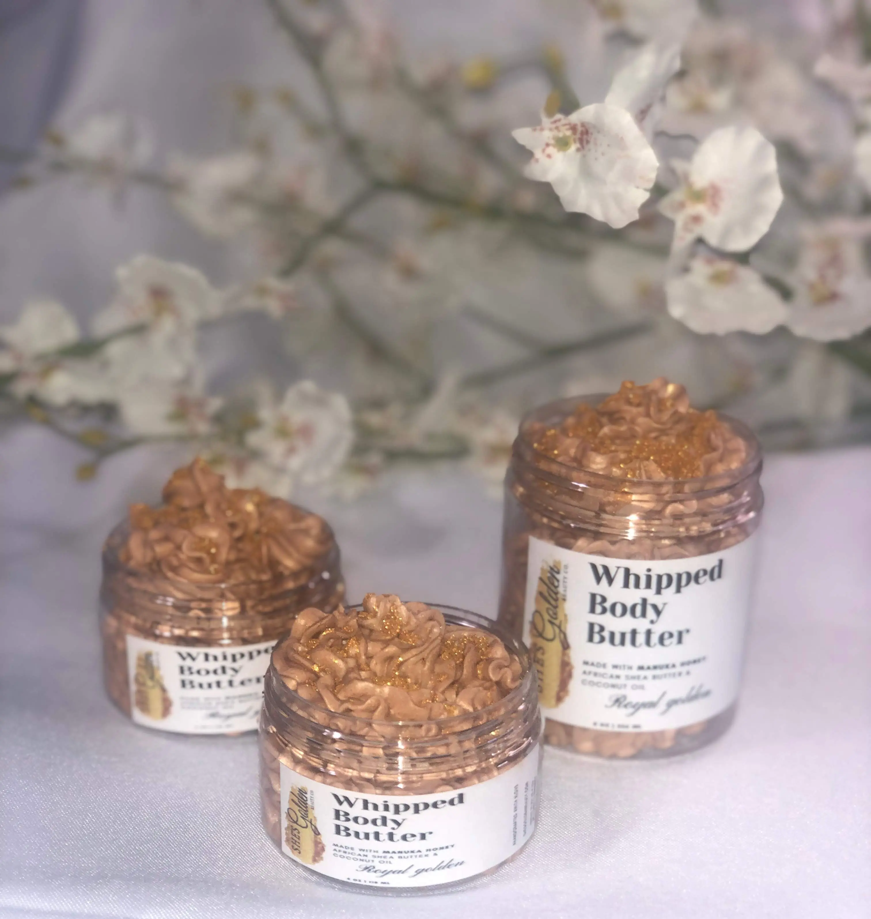 DETAILS: Our signature rich and creamy body butter is a luxurious whipped butter with the alluring Royal Golden scent of SHIMMER. The nourishing whipped body cream is infused with a blend of moisturizing ingredients to help promote healthy smooth skin. HANDMADE WITH ALL NATURAL ORGANIC PRODUCTS AND LOVE! 💛✨