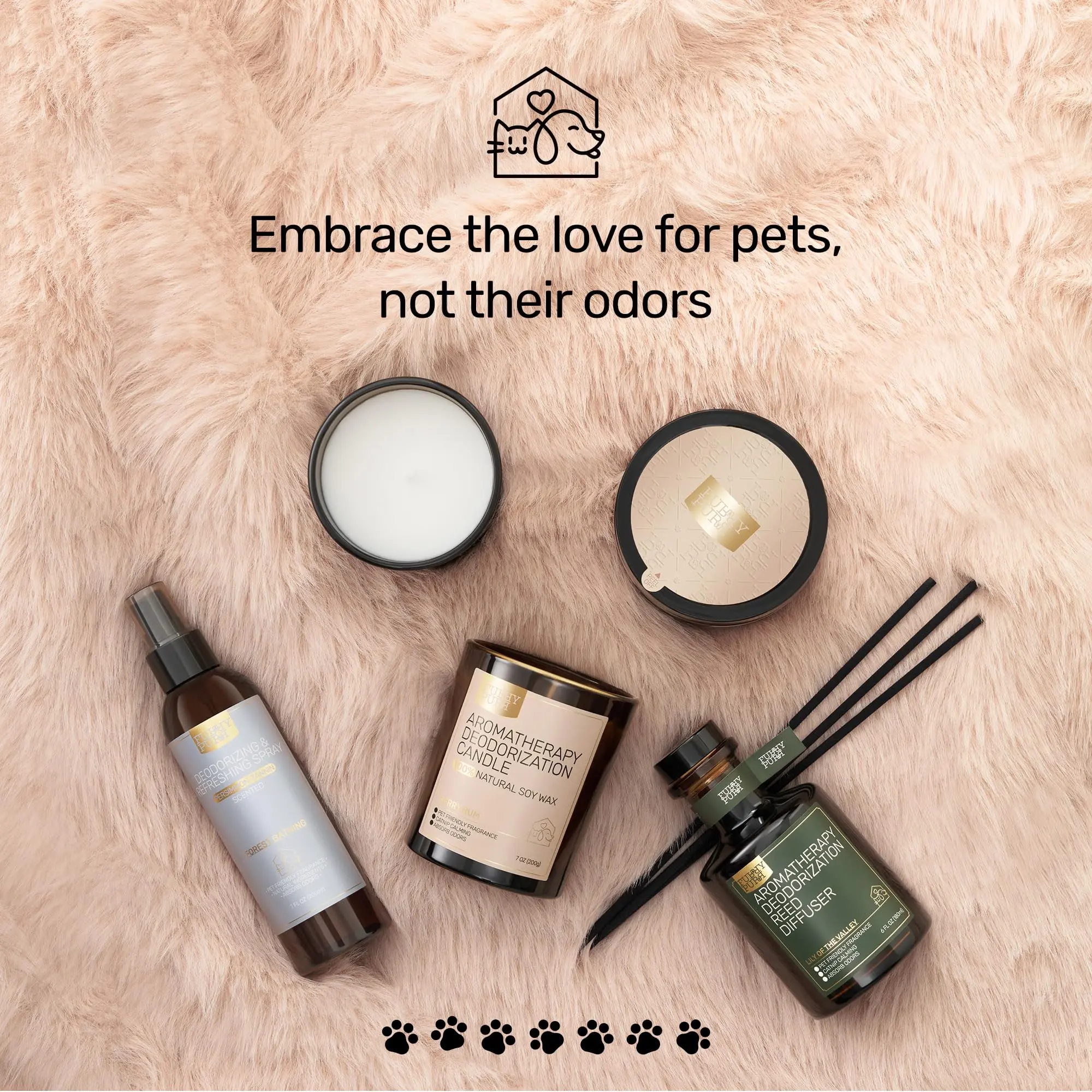 We are a group of pet lovers dedicated to bringing comfort and happiness to every furry companion. As pet parents ourselves, we understand your concern for your pet's well-being, as well as the odor-related troubles that come with being a pet owner. That's why we created FURRY PURR with a mission to create a more harmonious and fragrant living space for both pets and people. We believe that every pet deserves to be treated with care and love, so we do not add any harmful ingredients and providing them with safer products.