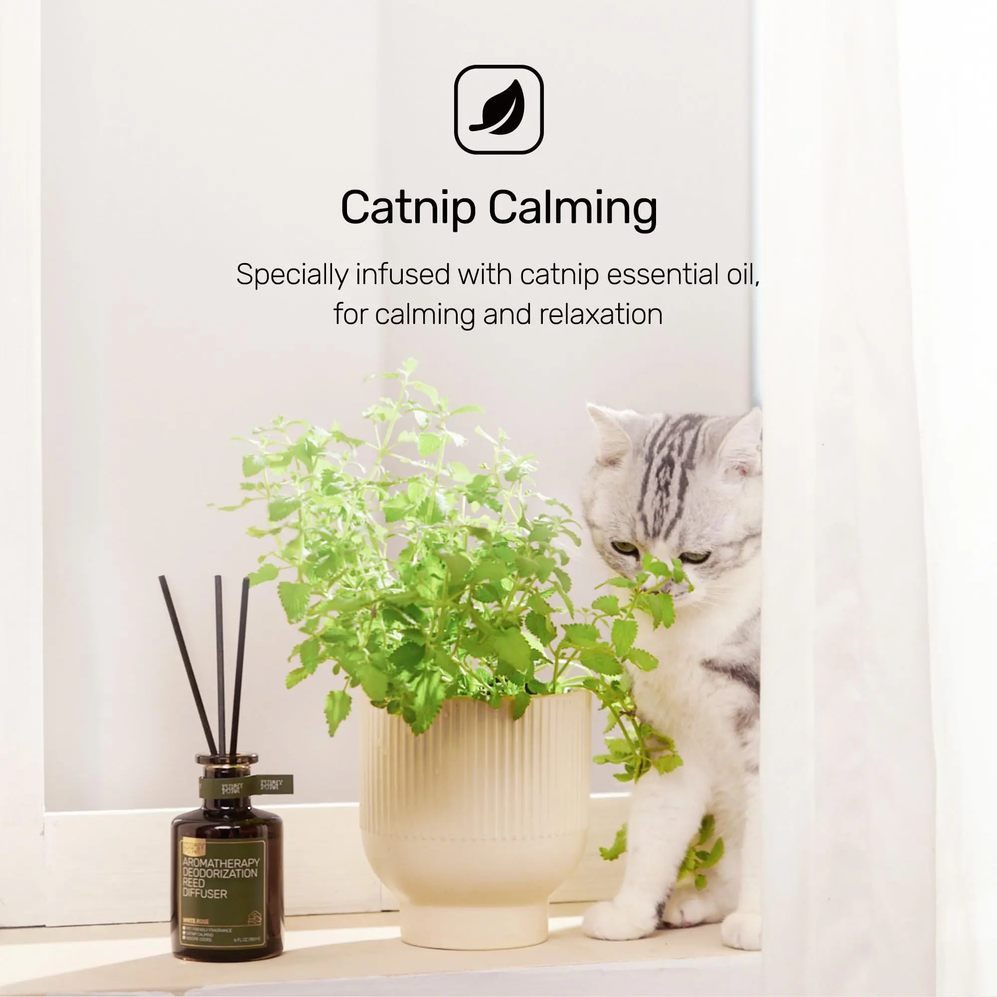 The reed diffusers are specially formulated with catnip essential oil to produce a calming and soothing effect on pets, especially cats. At the same time, catnip brings a pleasant endorphin sensation to humans, achieving a relaxing effect for both humans and pets