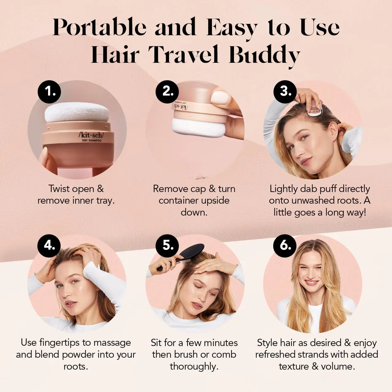 ·REVIVE YOUR LOOK ANYWHERE, ANYTIME: Elevate your style effortlessly with our ingredient-rich tinted dry shampoo hair powder. Designed for convenience, it extends the life of your hairstyle from 3 to 6 days beyond wash day, ensuring freshness and volume on the go. Experience instant lift and revitalized locks with Kitsch Volumizing Travel Size Dry Shampoo Powder—it’s your secret weapon for a fresh, voluminous look without the need for water.