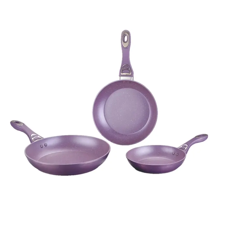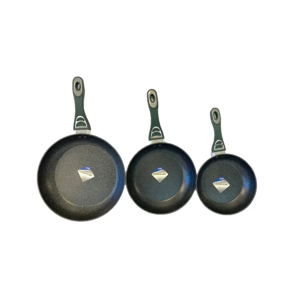 Introducing the 3 Frying Pan Combo with Marble Coating, a new addition to your kitchen essentials. This versatile set includes three forged aluminum frying pans, designed to ensure efficient heating and uniform cooking.
