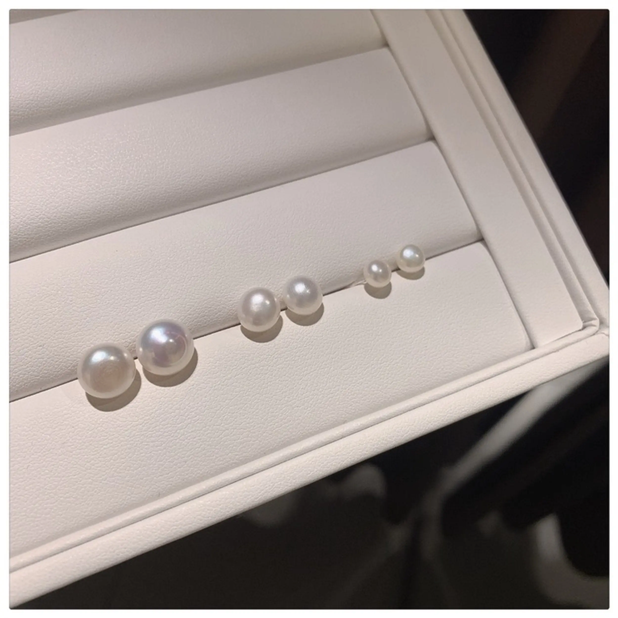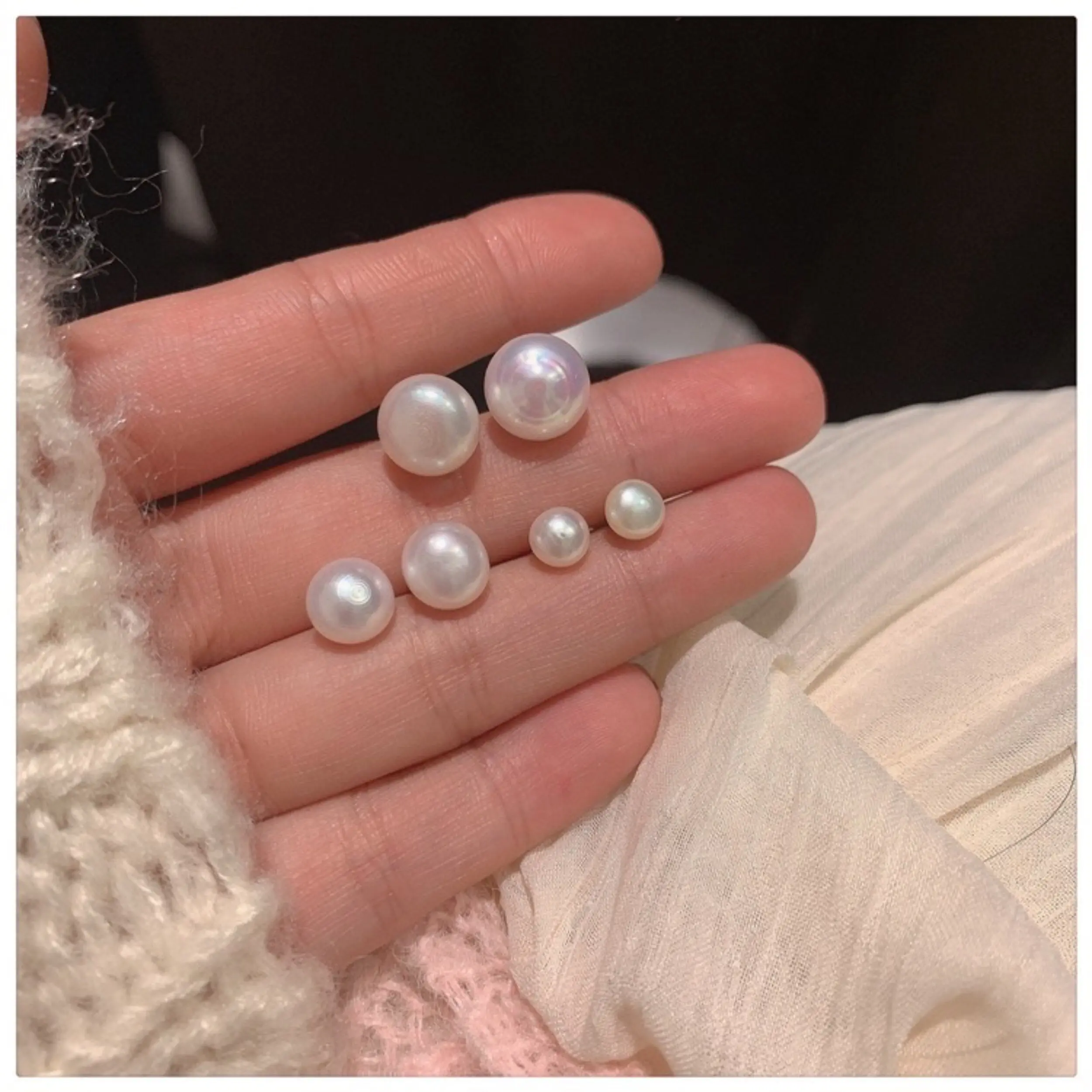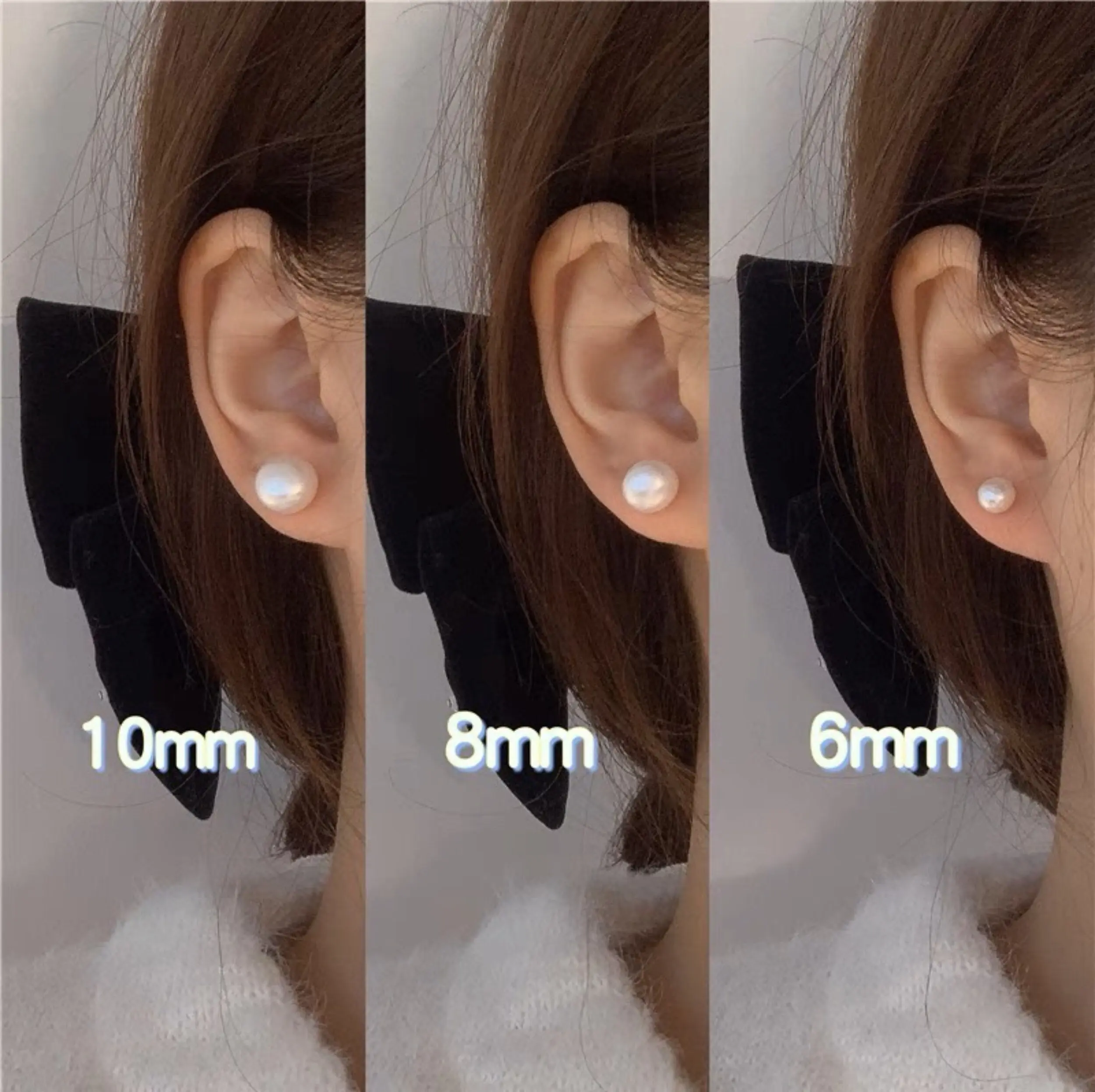 Classic everyday simple natural pearl stud earrings. We chose the top quality ivory oblate round pearls, every pearl is natural with beautiful real shimmery. A must-have minimalist ear jewelry for any outfit and any occasions.