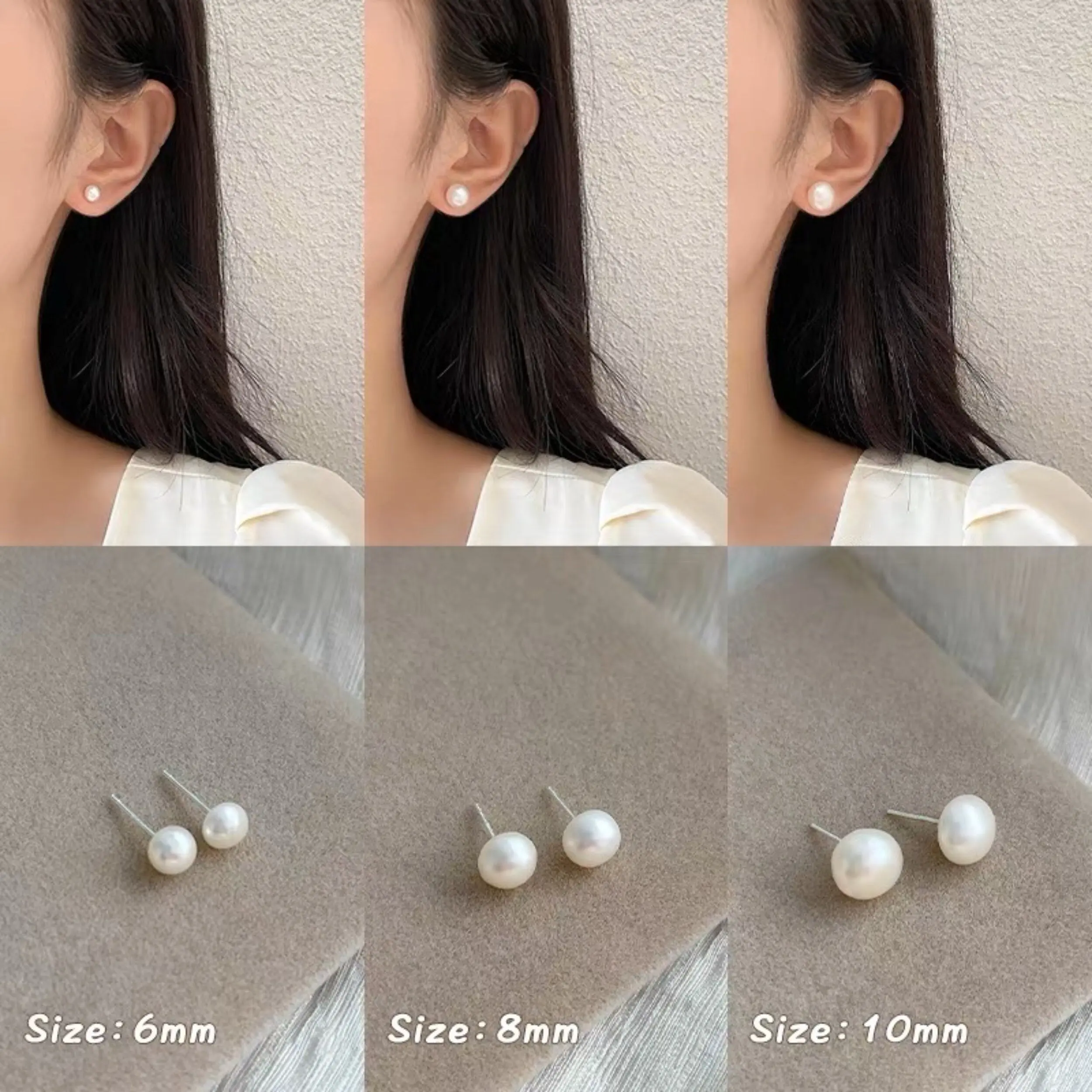 Natural real pearl simple stud, 6mm 8mm 10mm round pearl studs, Ivory pearl stud earrings, Everyday stud earrings, Minimalist pearl earrings