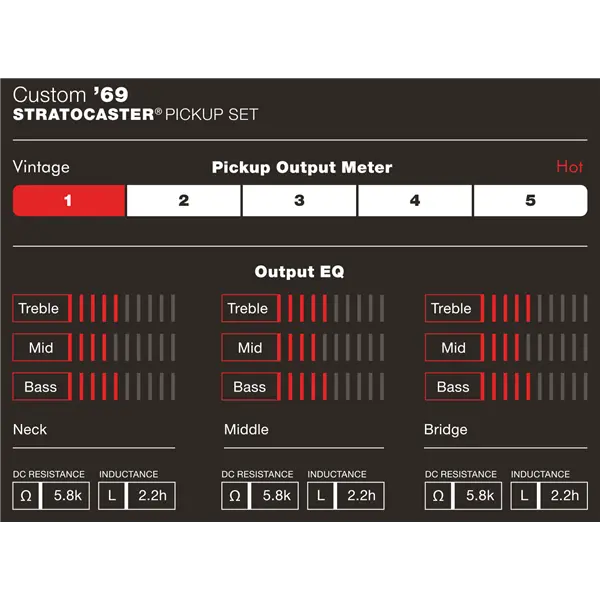 The "Summer of Love" doesn't have to end- the '69 Strat pickups have the tone you'll fall in love with. Own the tone that defined an era. For a short period in the late 60's, Fender® used a height staggered Alnico 5's and a special grey bobbin which produced clear, transparent highs and thumping lows. OEM on the Custom Shop '69 Stratocaster®. Available in white only. Sold only as a set of 3.