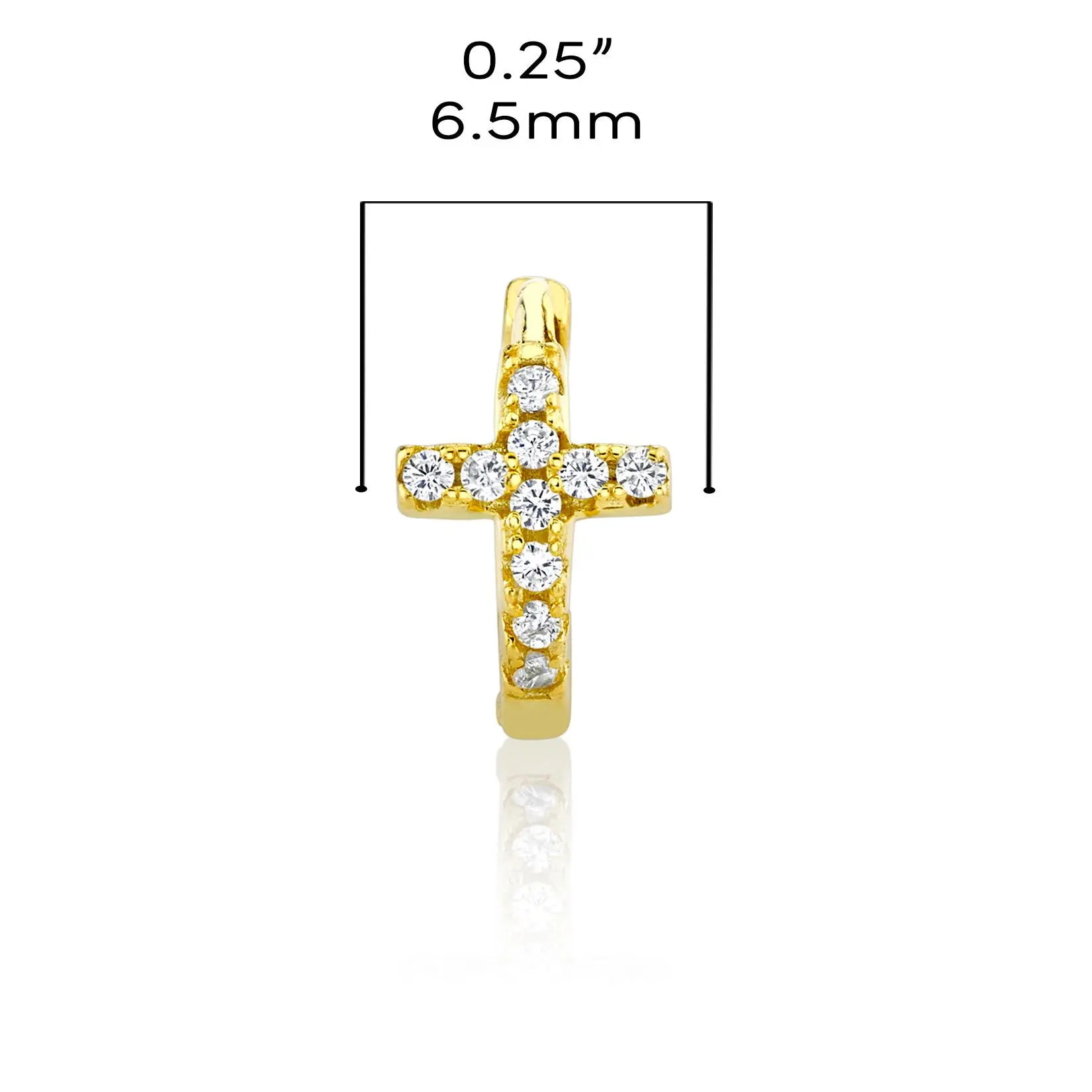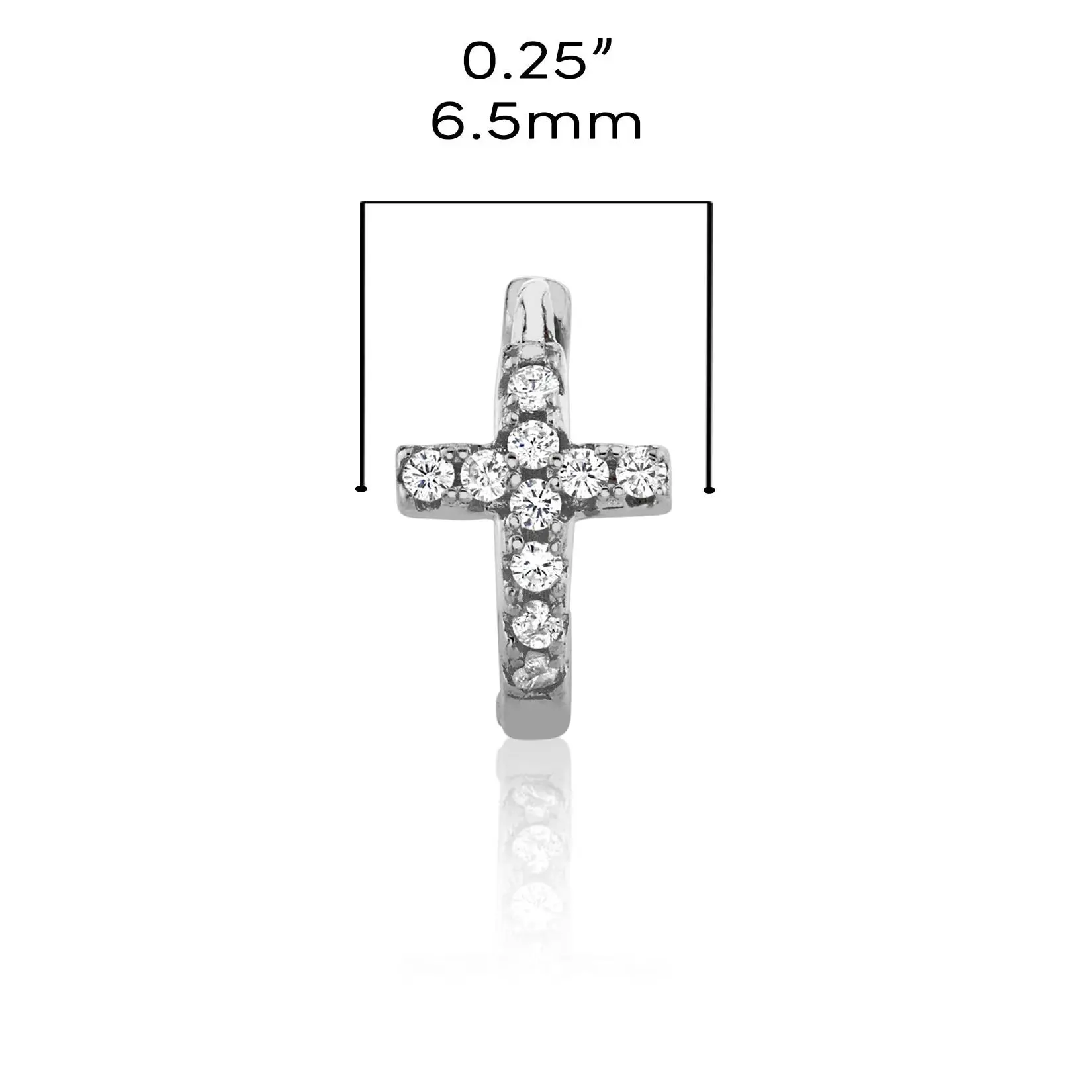 Introducing these lovely, classic Cross hoop earrings. This pair of alluring yet silver cross earrings is finely crafted 925 Sterling Silver, with sparkling clear cubic zirconia stones in a prong-set. For a spiritual heavenly look to any outfit, wear these cross hoop earrings and take your faith wherever you go with you.