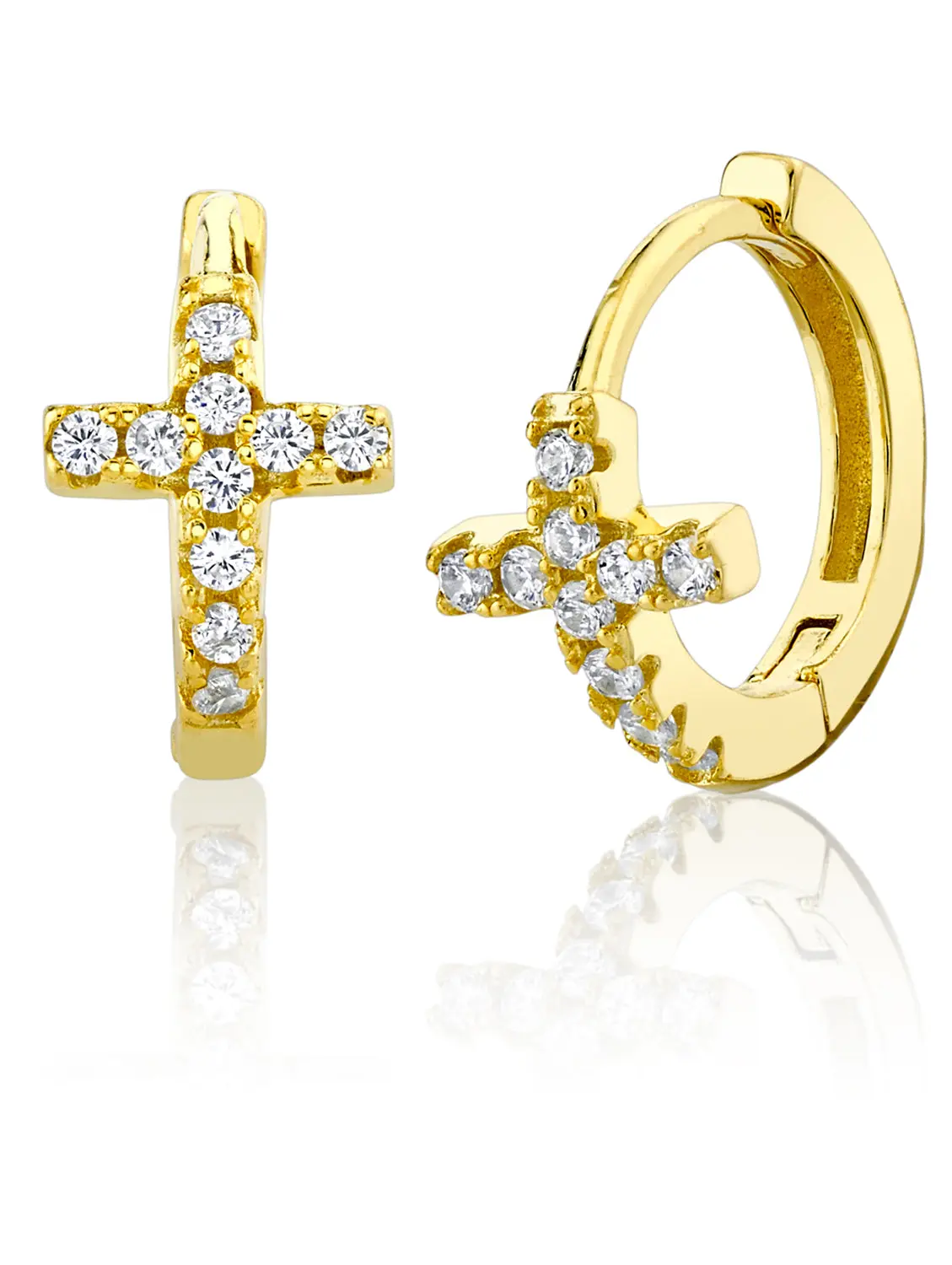 ·Pair of matching set Cross design huggie hoop earrings, pick from goldtone or silver.