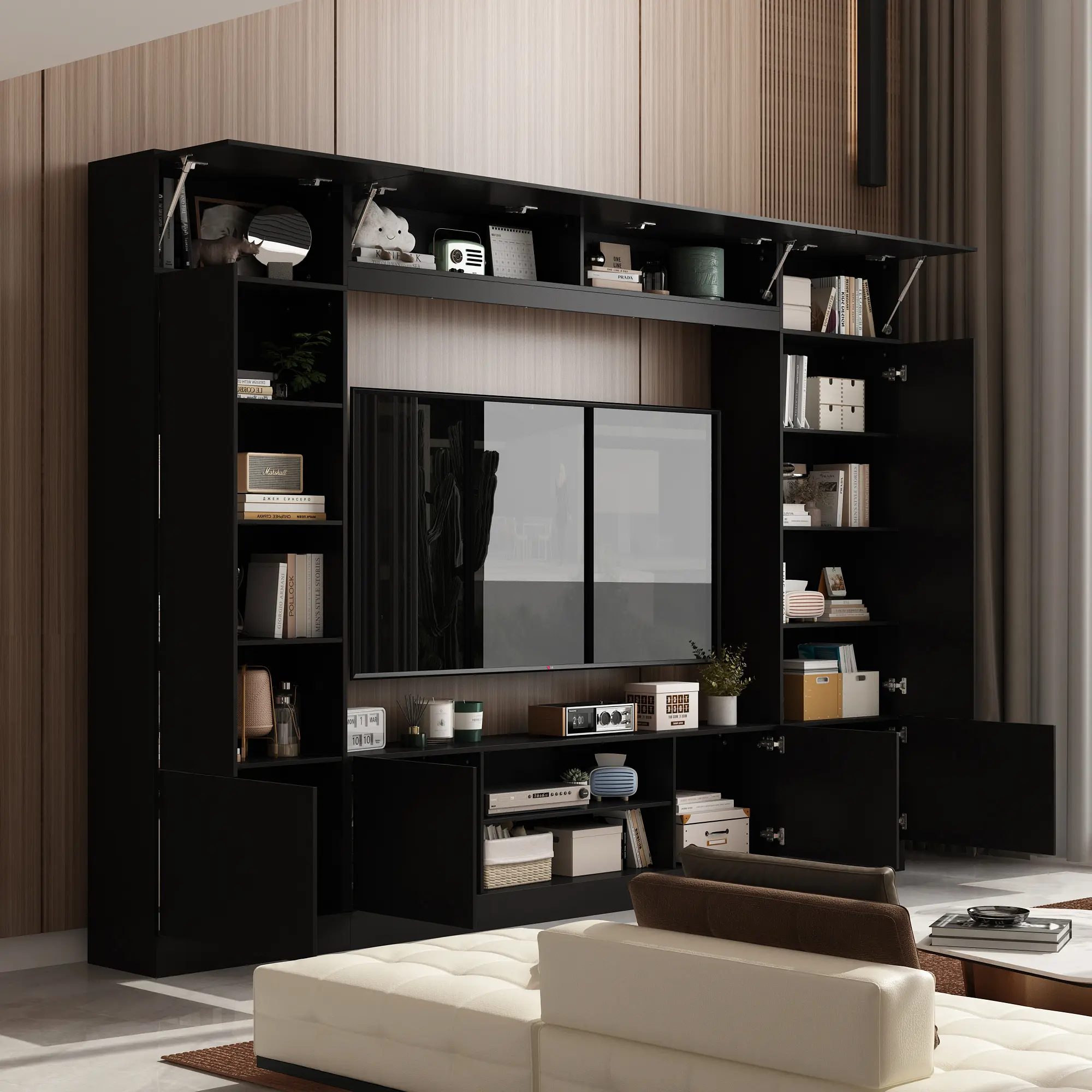[Assembly] - Our modern tv stand wall unit is 100% assembly needed and comes with detailed manual. All the parts are packed in 3 boxes. If you have any questions before or after purchase or during installation, please feel free to contact us and we will help you within 24 hours.