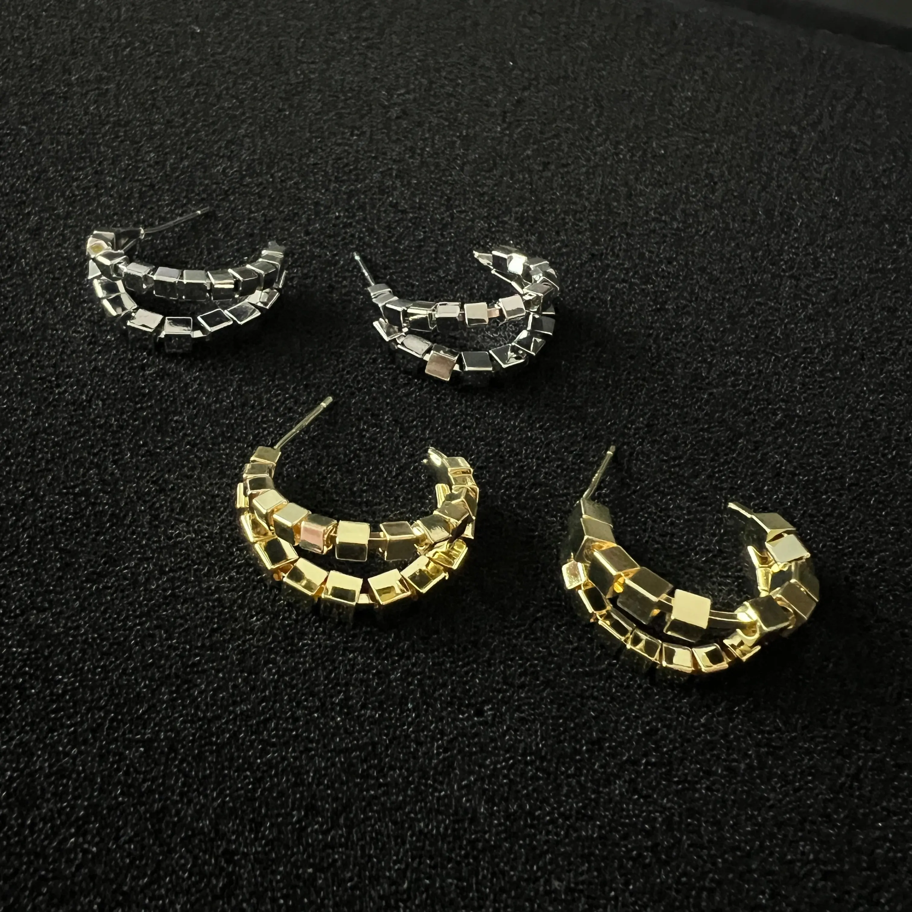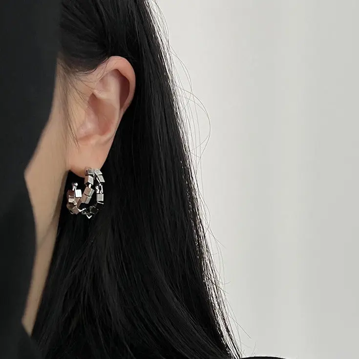 These 925 silver pins, double layer gravel earrings will make a statement. Crafted with exquisite detail and artistry, these earrings are sure to add a unique touch of style to any look.