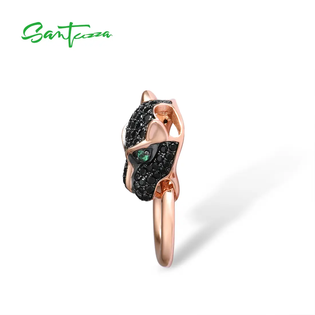 SANTUZZA 925 Silver White Cubic Zirconia Lab Created Green Or Black Spinel Leopard Ring Fine Jewelry