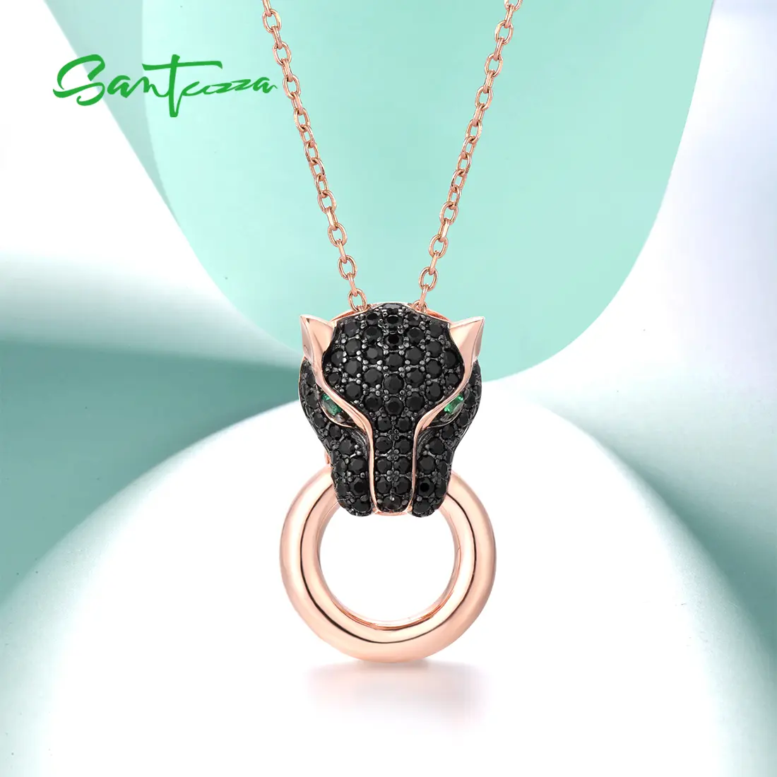 SANTUZZA 925 Silver White Cubic Zirconia Lab Created Green And Black Spinel Leopard Pendant Without Chain Fine Jewelry