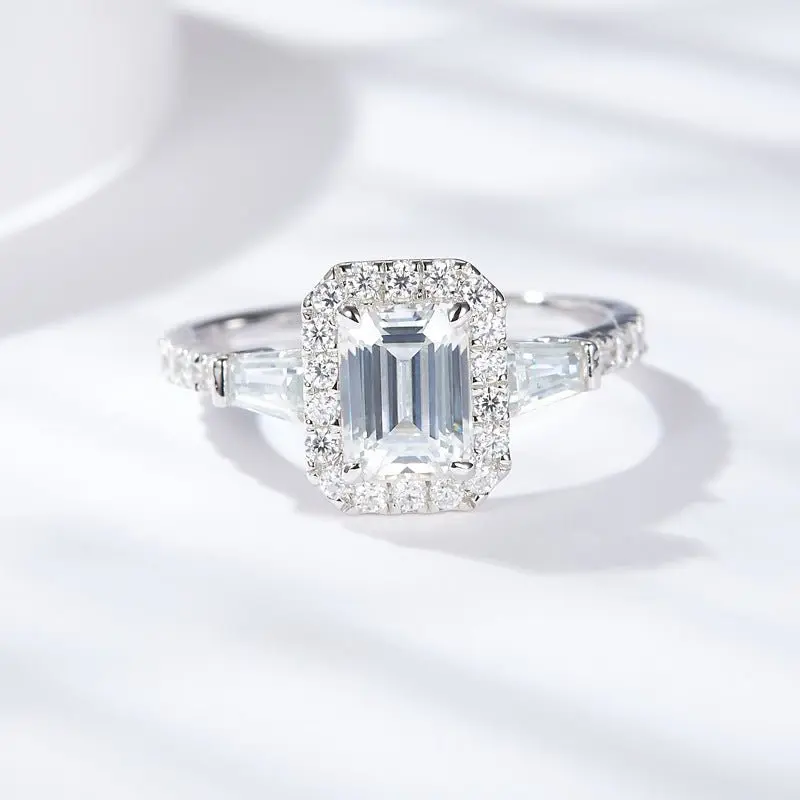 Discover the Brilliance of the 925 Sterling Silver D- Emerald Cut Moissanite Ring! Crafted with the finest quality 925 sterling silver, this ring showcases a mesmerizing emerald cut moissanite in a dazzling D-color. Experience the beauty of a moissanite's brilliance, which rivals that of a diamond. The sleek and elegant design of this ring is perfect for any occasion, making it a must-have addition to your jewelry collection. Elevate your style and embrace the allure of the 925 Sterling Silver D-color Emerald Cut Moissanite Ring. Shop now and shine bright with sophistication.