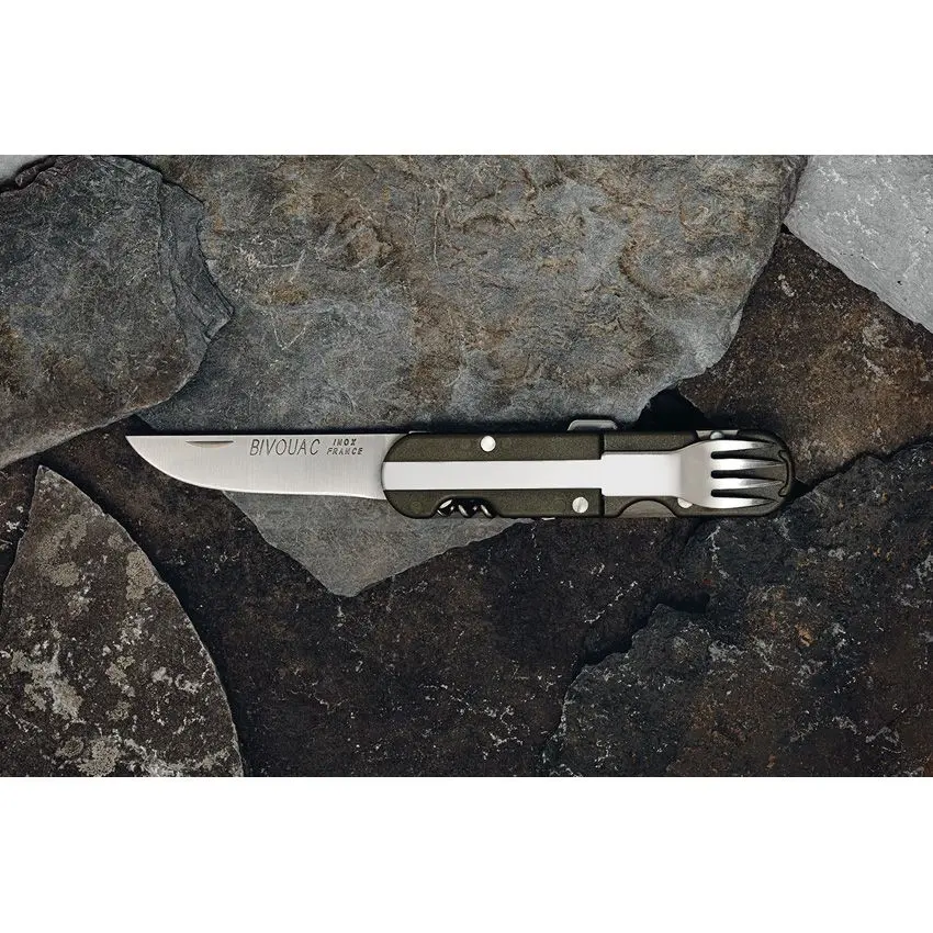 It is a quick easy way to eat whatever you prepared out in the woods. Sturdy fork and spoon. The knife is as strong as you would expect the French to make it. Overall for the price a nice little addition to the collection