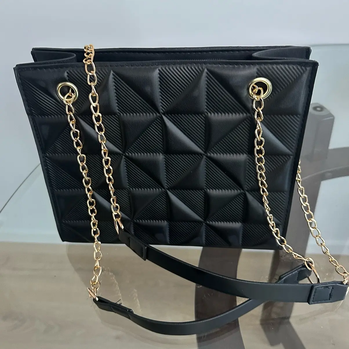 With ample space to store all your essentials, this handbag is both practical and fashionable – a perfect combination for any occasion. Its sleek black color complements any outfit, making it a versatile accessory that can transition seamlessly from day to night.