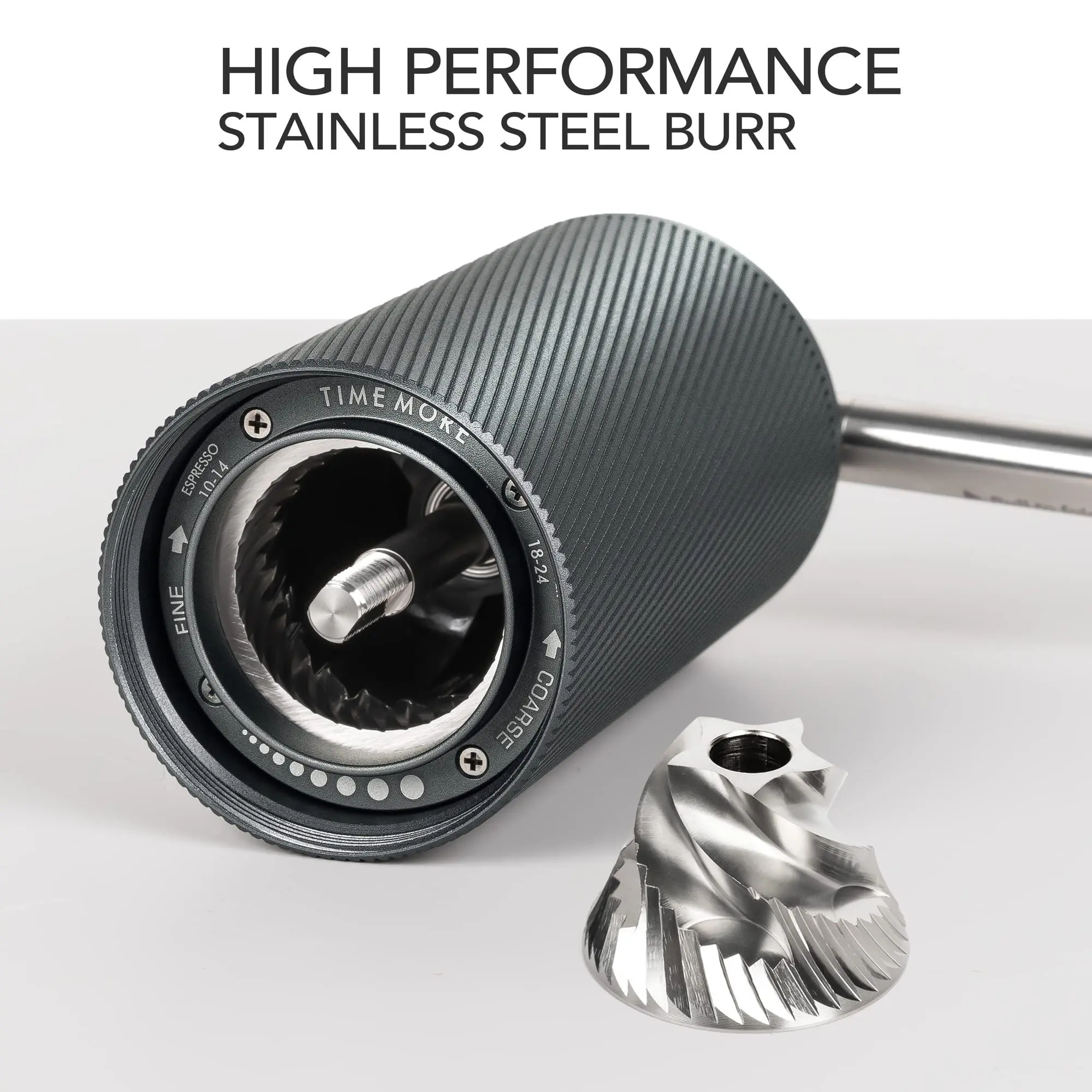 This manual coffee grinder is still lightweight, making it easy to hold while grinding your favorite beans. It comes with an internal adjustable grind setting that allows you to customize your grind size according to your preference.
