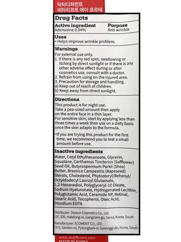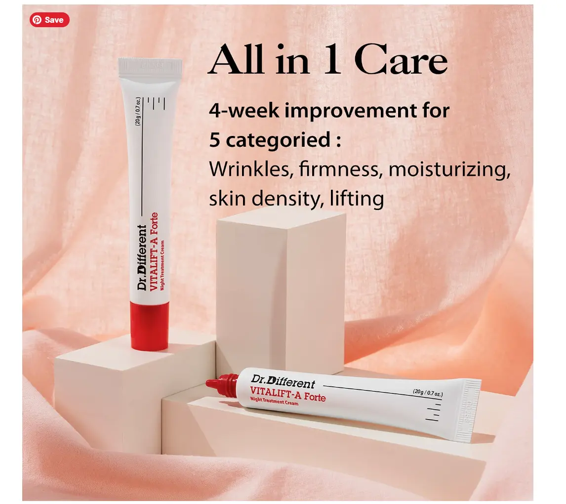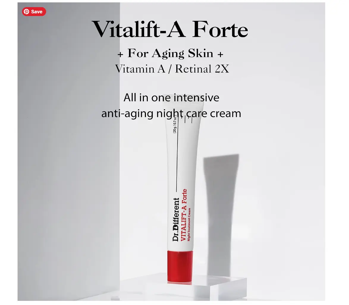 Dr.Different VITALIFT-A Forte - Retinal Intensive Anti-Aging Night Cream for Lifting & Firming-Anti-Wrinkle Face Moisturizer Cream with Vitamin A & Hyaluronic Acid Reduce Wrinkles & Fine Lines 0.7oz.