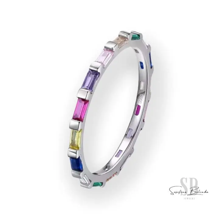 Jeweled Rectangles Sterling Silver Eternity Stacking Ring