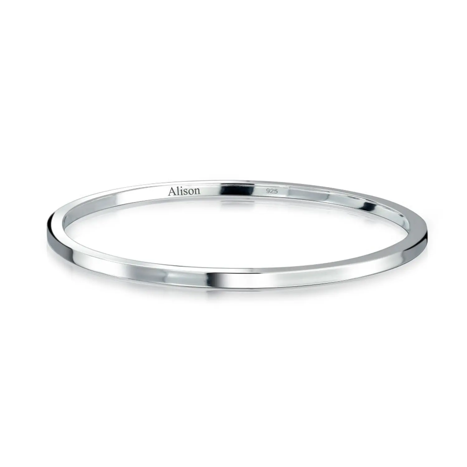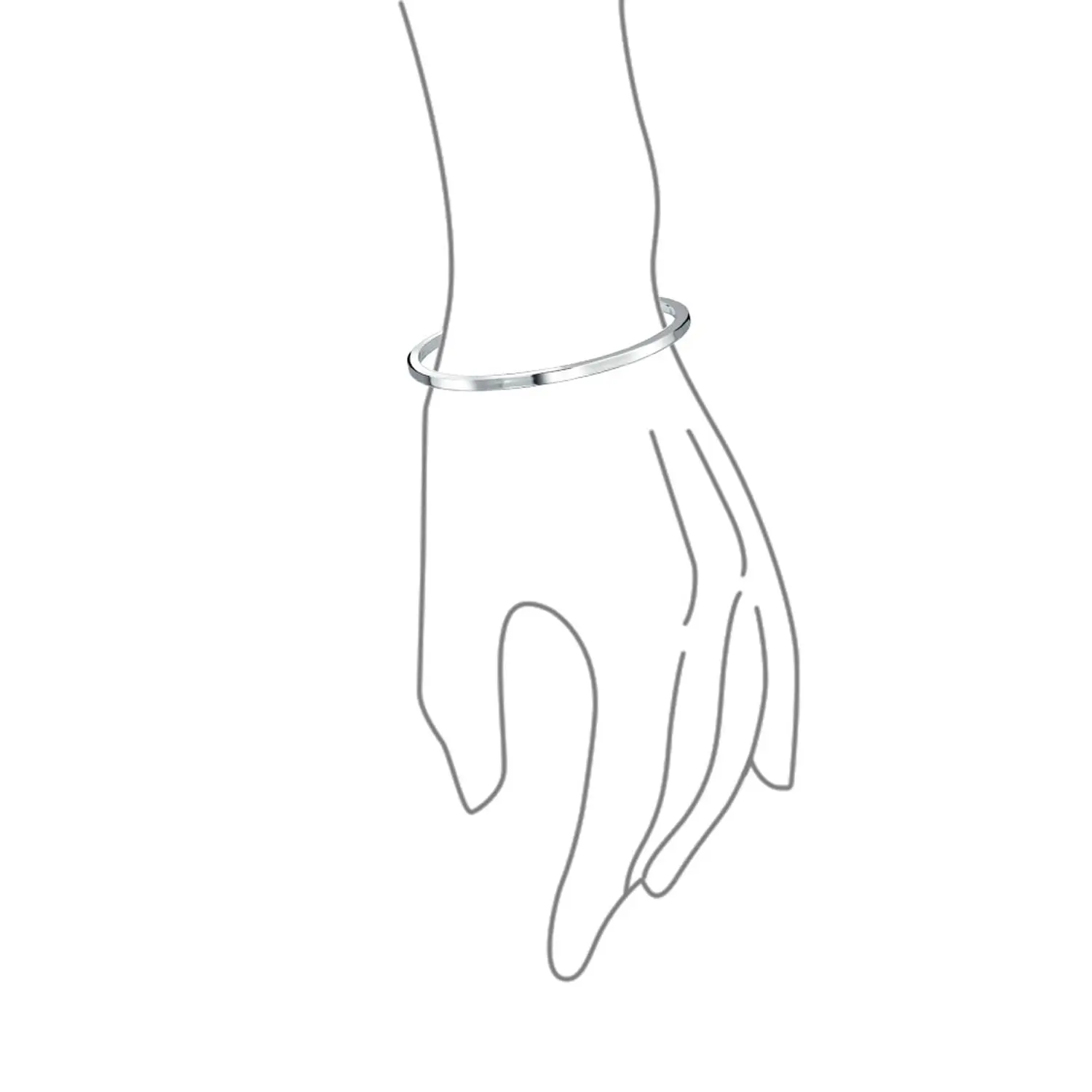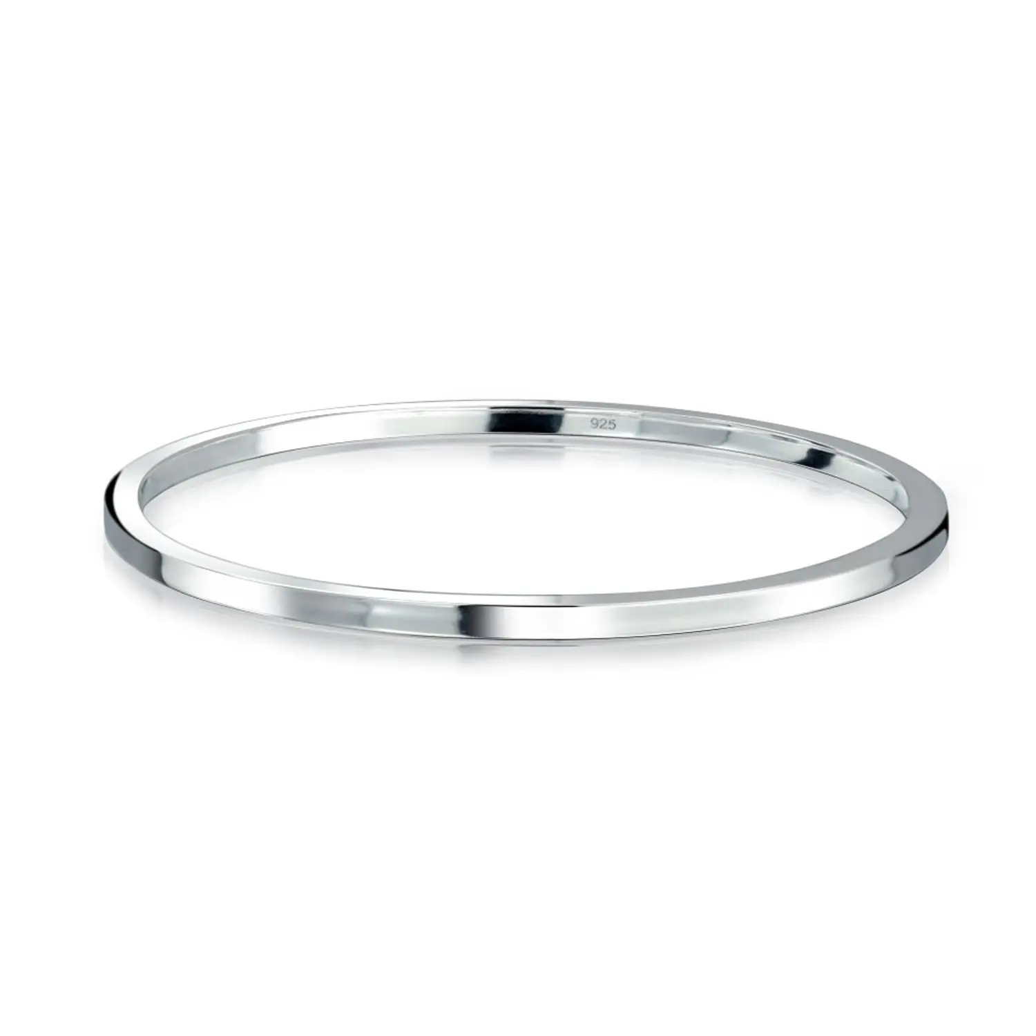 Slip something comfortable on your wrist with our newest sterling silver stackable bangle bracelet. Our silver bangle bracelet is the perfect addition to any chic women's jewelry box. If you love the look of thin stackable bangles bracelets, you may want to buy more than one for your fashionable arm. Lightweight at 7.6 grams and just 3mm wide, these silver bracelets for women will liven up any look in one easy step. This contemporary silver bangle bracelet fits up to a 7-8 inch wrist. The polished shine is eye catching and chic and makes this thin sterling silver bangle a must have item to mix and match with other silver bracelets in your collection of fashion jewelry bracelets. Show off your unique sense of style when you wear stackable bangles and add a glistening pop of pretty to your look.