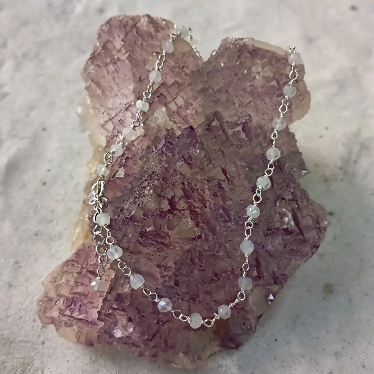Looking for a fun and stylish accessory that's also brimming with magical properties? Look no further than the Sterling Silver Rainbow Moonstone Anklet! Hand-beaded with approximately 3mm x 4mm rainbow moonstone beads and finished with a spring ring clasp, this anklet measures 9.5" in length, plus an additional 1" extension for the perfect fit.