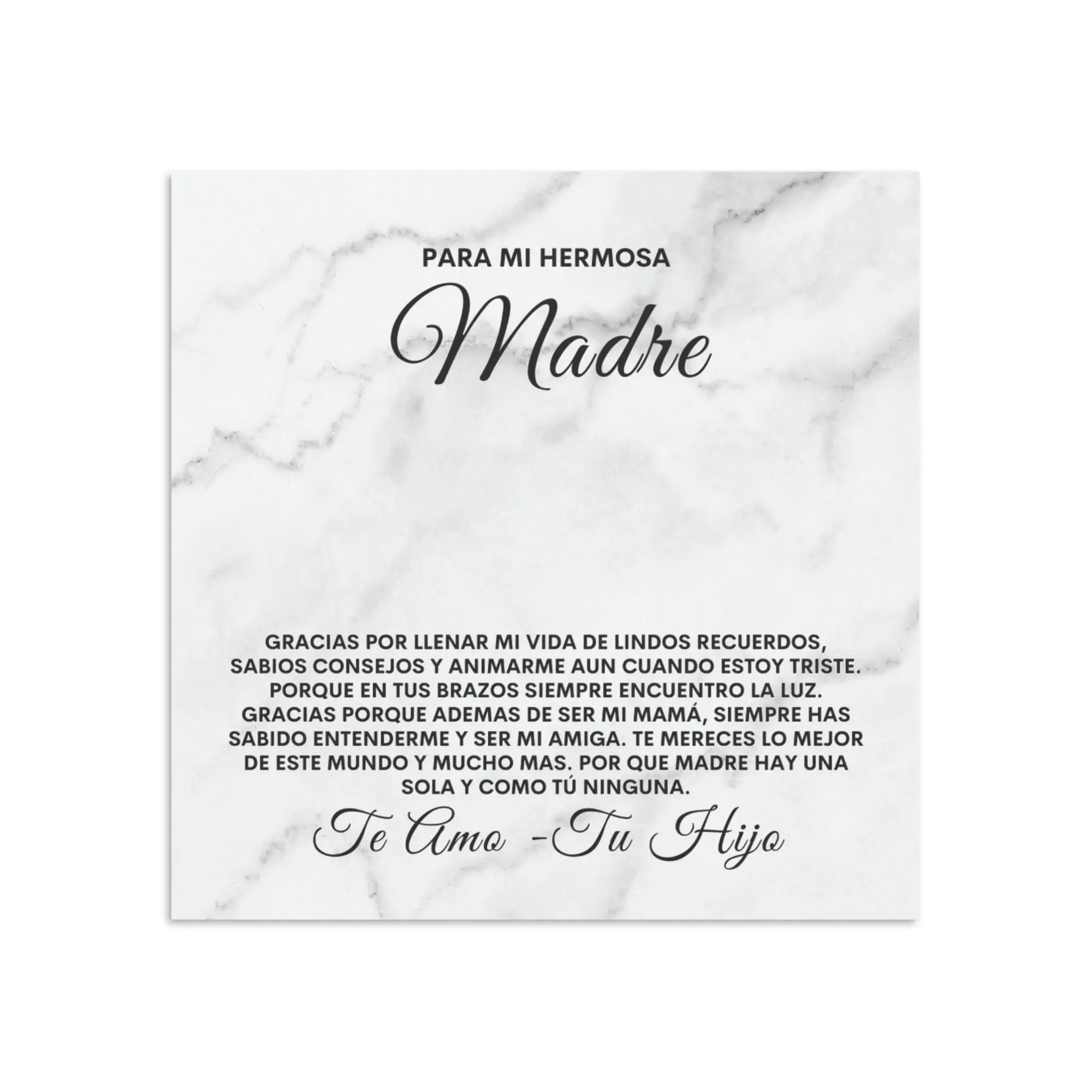 • Tarjeta de mensaje personalizable en papel semibrillante de 300 gsm.