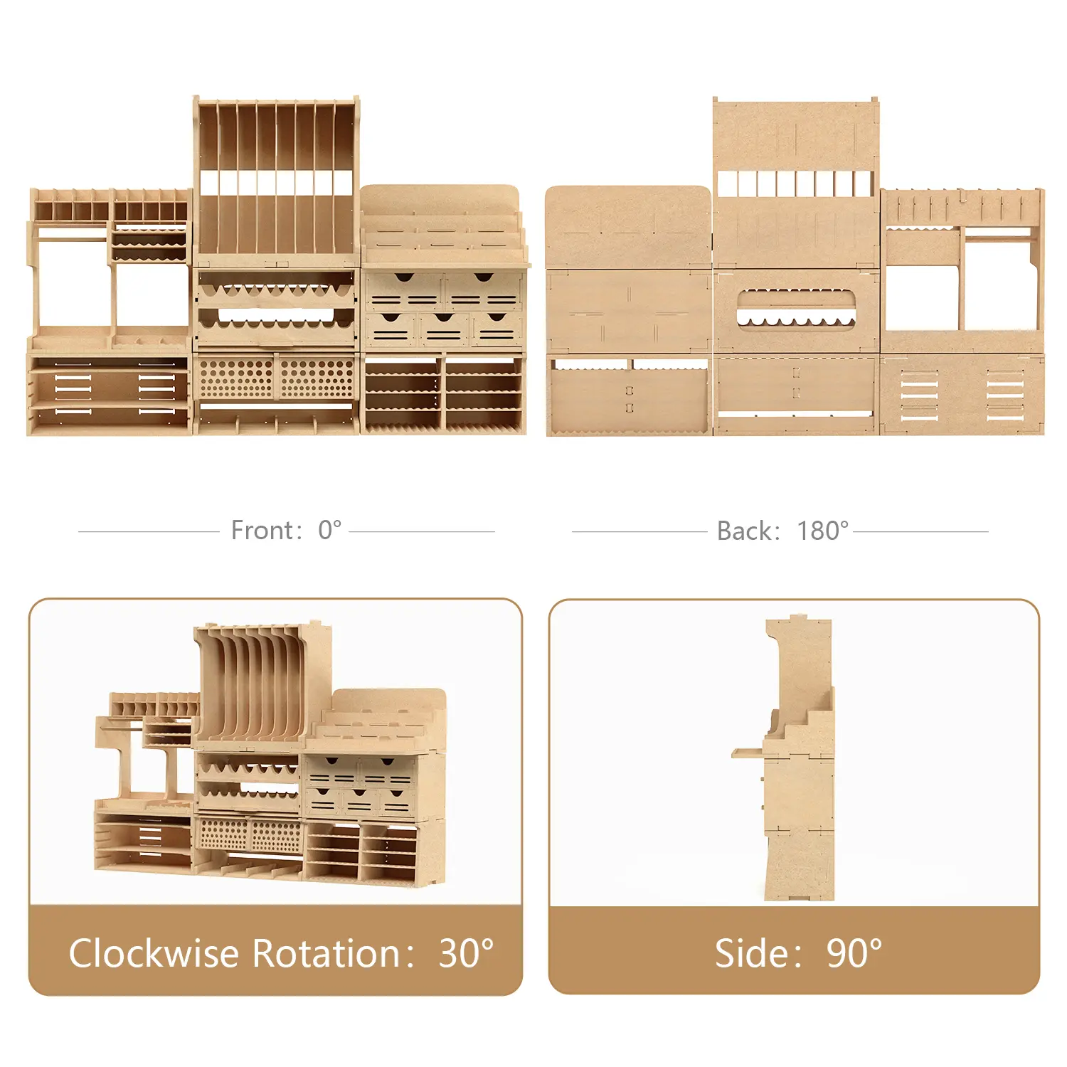 ·【Easy to Assemble】Due to the ductility of the wood, this wood product will stretch 1-2mm under the influence of moisture in the air, so it needs to be sanded with sandpaper and then tapped with a hammer when assembled. The mating is tight to ensure a tight bond and keep it from falling apart.-Plastic model tool storage racks are unassembled, packaging and assembly instructions are included with each block. It‘s also accompanied by diagrams, which are easy to understand and easy to assemble.