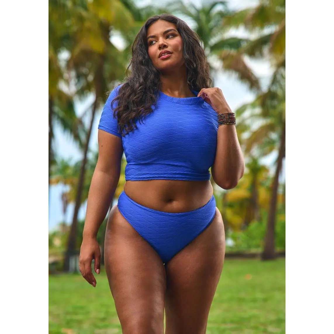We had to give you the perfect crop top, so here is the Redondo. The perfect mid-waist length and made to fit just like your fave baby-tee, it's made in the same fabric as our Cobalt bikinis. This top pairs perfectly with our Cobalt bikini bottoms for a new surf outfit, or pair it with the matching Santo Domingo tube skirt for a matching set.