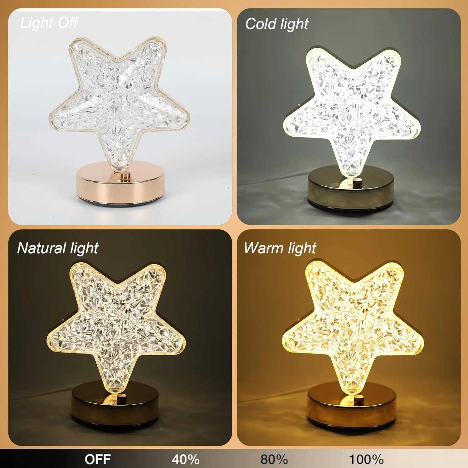 ● Touch control and rechargeable: There is a USB type-C connector at the back of the base of the star Lamp lamp, we prepare a cable up to 1.5 meters long for you, convenient for you to be able to use it in all kinds of conditions, our lamp has 3 modes, cold light, warm light, combined light, you just need to press the touch control, adjust to the mode you need to use!