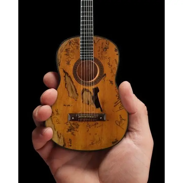 This collectible miniature guitar replica was hand-crafted with all the vintage detail. The original Trigger was used in many concerts throughout the world. The Trigger is well known for its distressed features and hole worn in it.