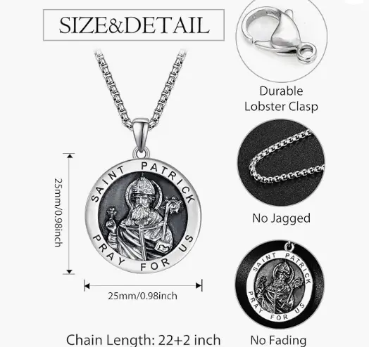 ·MEANINGFUL JEWELRY - St. Patrick is the patron saint of Ireland, a Catholic saint, who risked his life to spread Catholicism in Ireland, becoming an Irish bishop, and later a saint. He brought the light of religion to every corner. St. Patrick medal will bring you blessings.