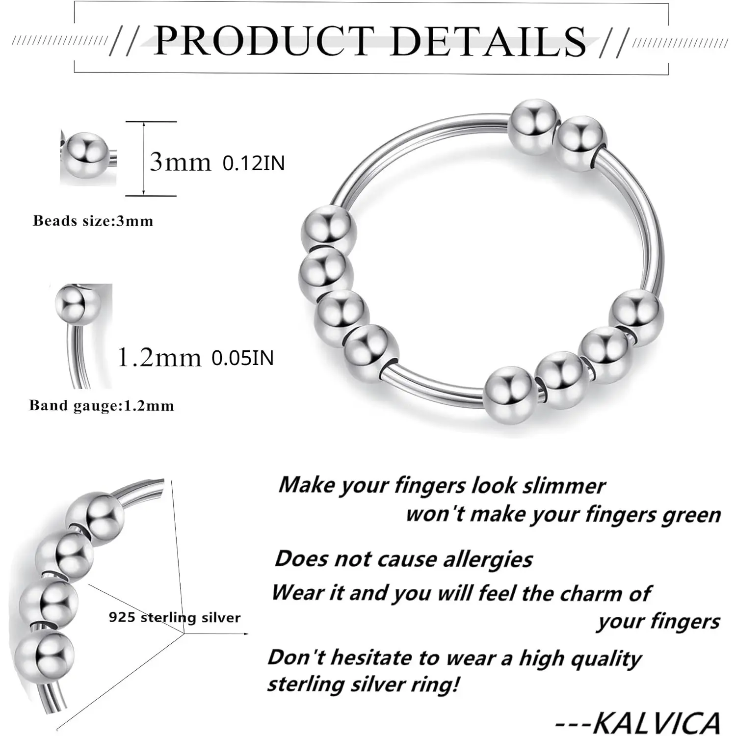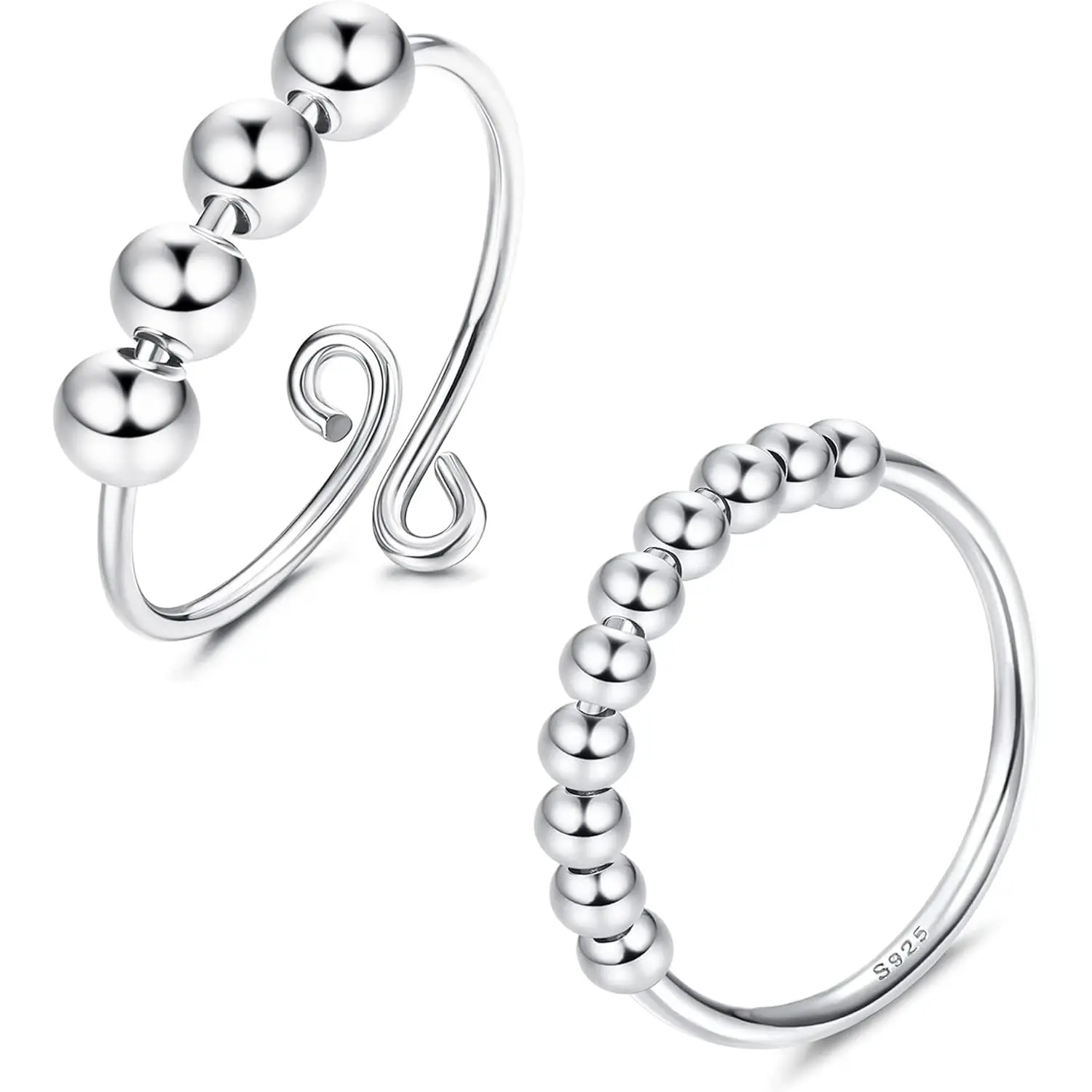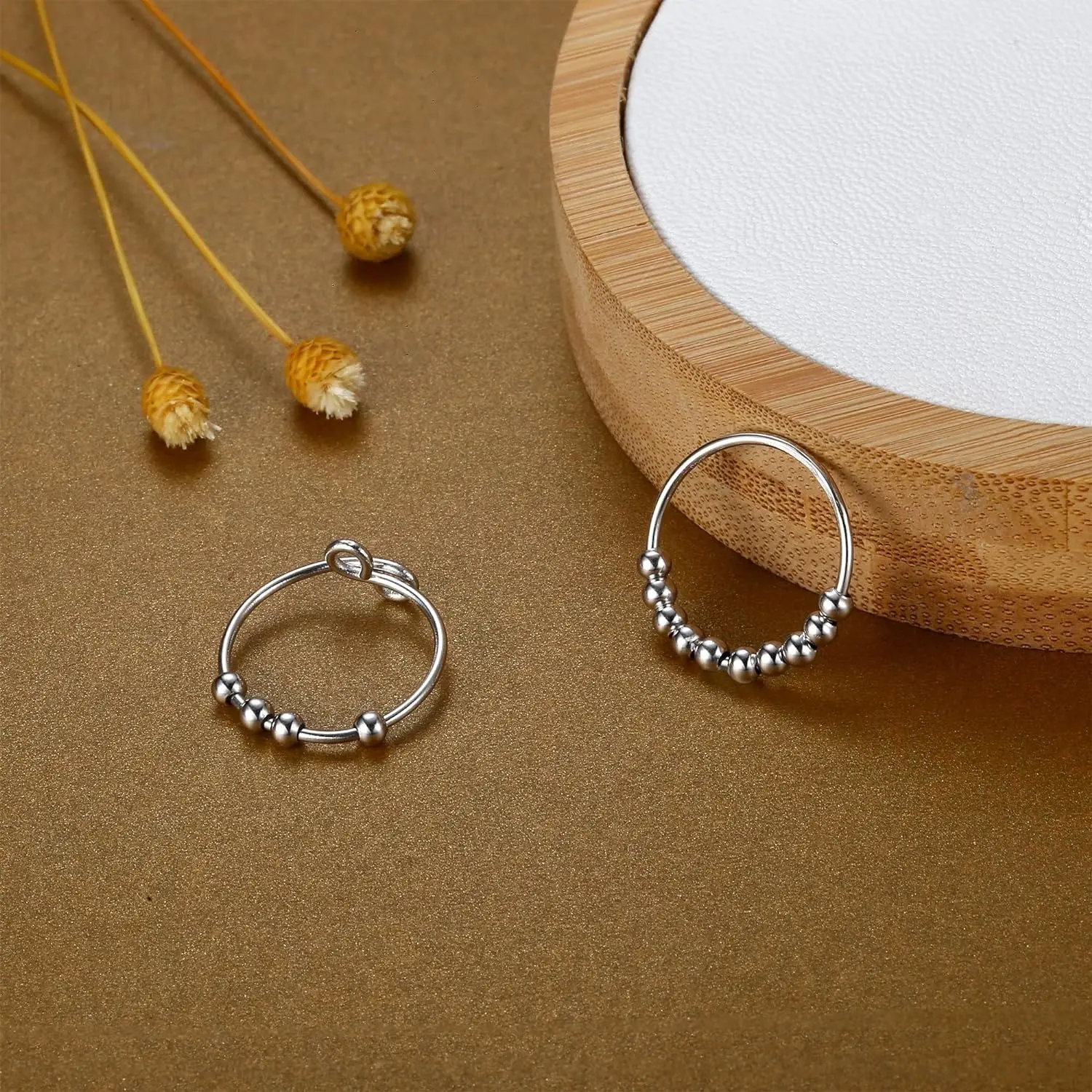 Fidget anxiety rings: made of 925 sterling silver, we support checking the material, if the material is not 925 silver, you can contact us for a full refund. This product has a total of 2 rings, one is a ring with 10 rotating beads and a ring has 4 rotating beads.