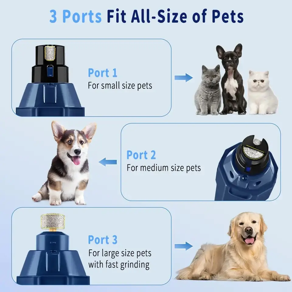 ·3 customizable grinding attachments for small, medium, and large pets