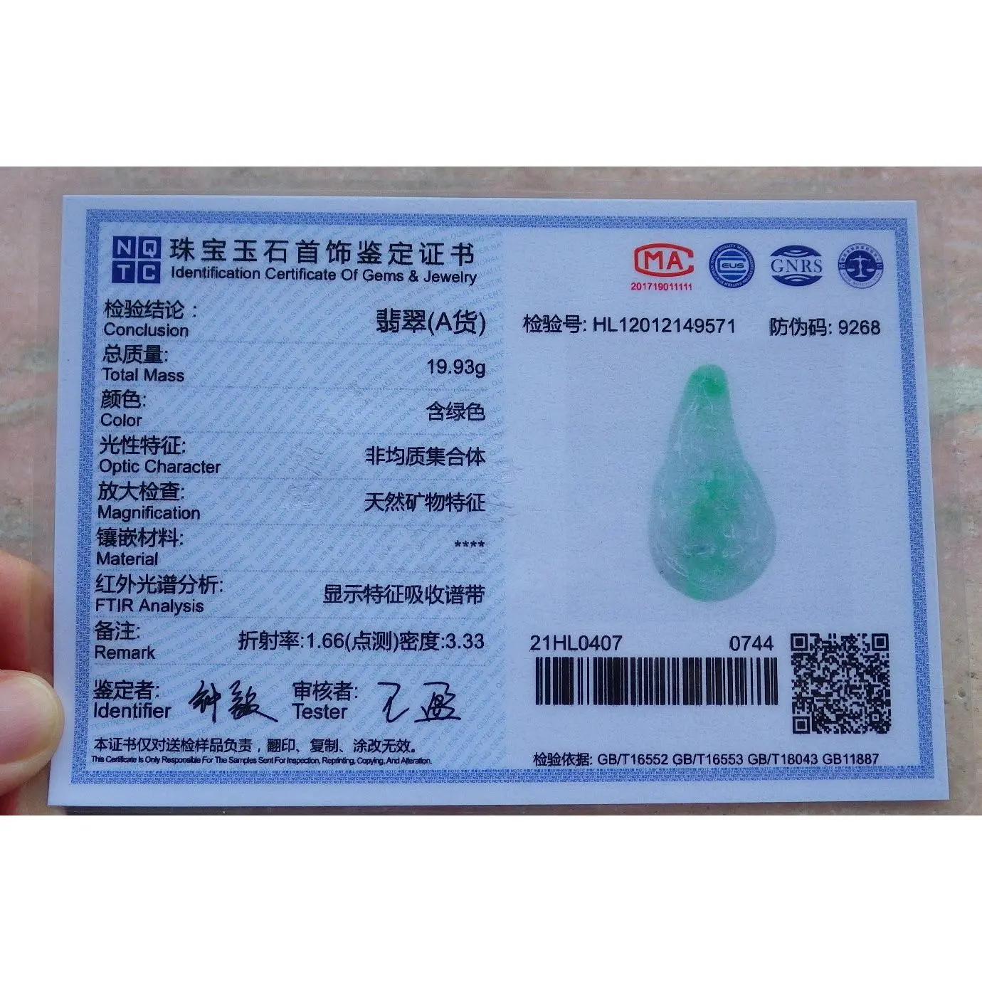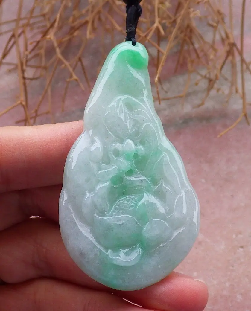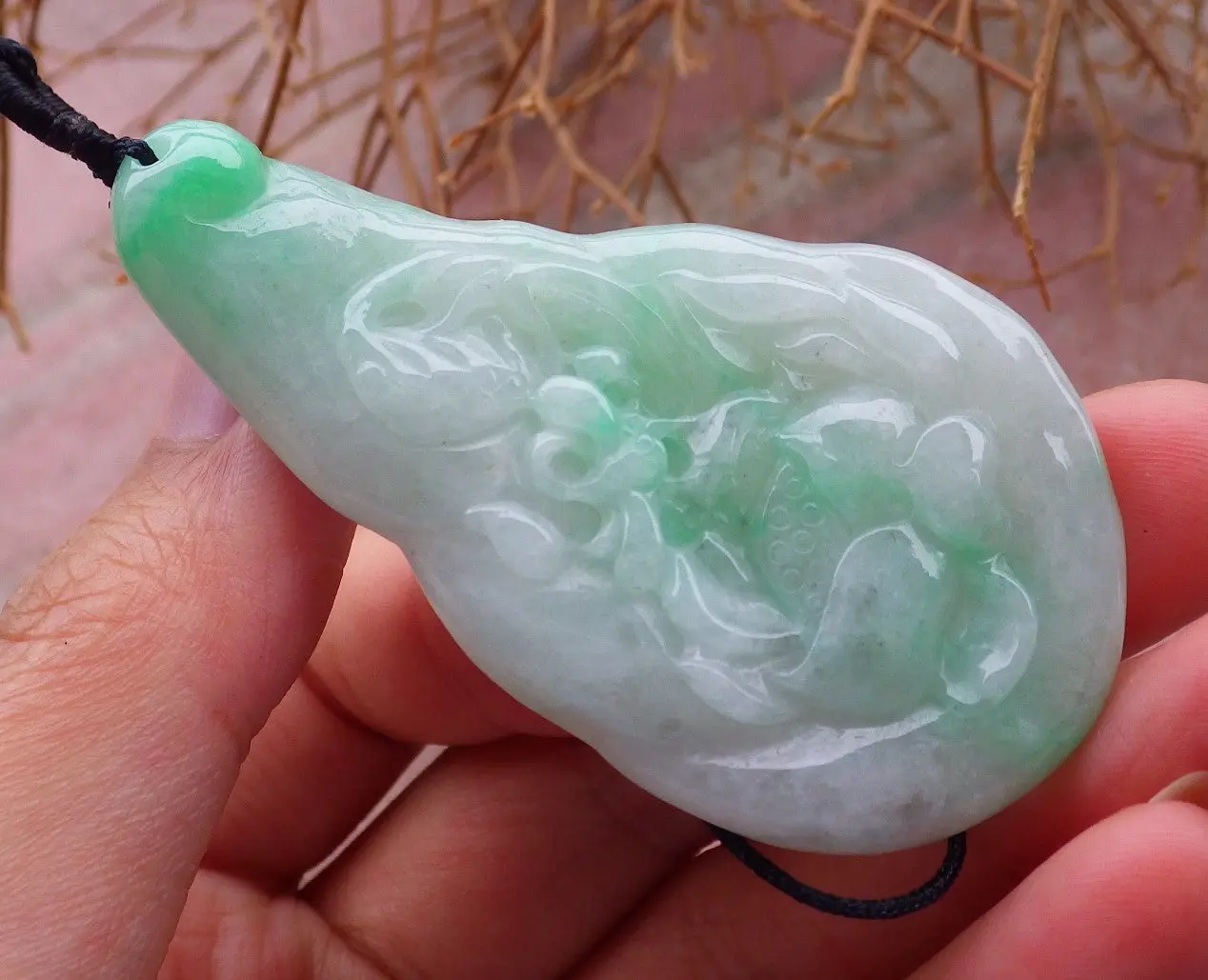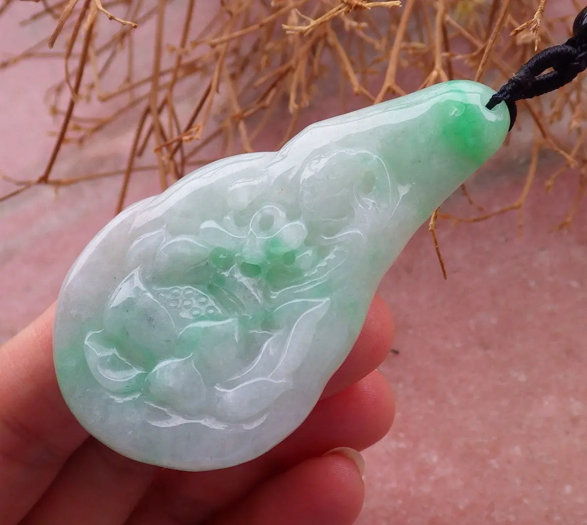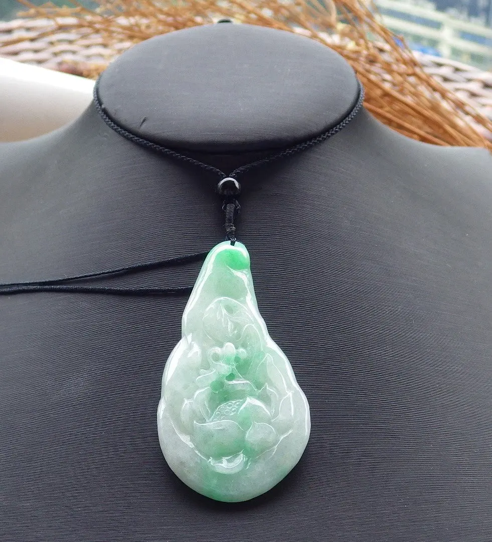 Certified Hand Carved Green Myanmar Burma Natural A Jade jadeite Dragonfly Lotus Flower Pendant Necklace Include Jewelry Pouch ** Free **Include Jewelry String Cord (Free)All of our pendant will separate come with a string cord.JADEITE Undyed, 100% Natural Burma A Jade JadeiteSIZE 61mm X 33mm X 6mmColor * See Photo *Certificate All Jadeite come with certificate